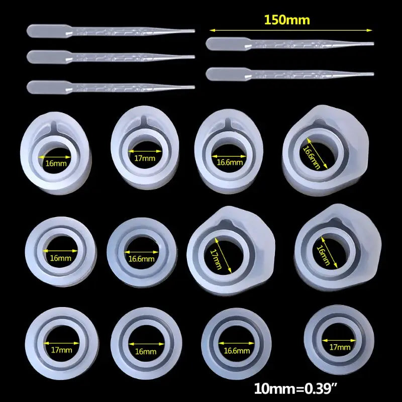 Create stunning jewelry rings with this epoxy resin kit that includes silicone mold ring molds in 3 sizes and a dropper. Perfect for DIY projects.