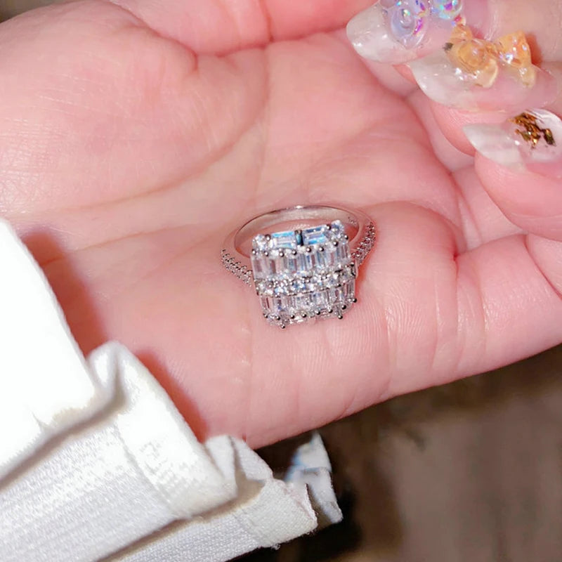 Beautiful high-quality eternity silver square ring, perfect for daily wear or special occasions.