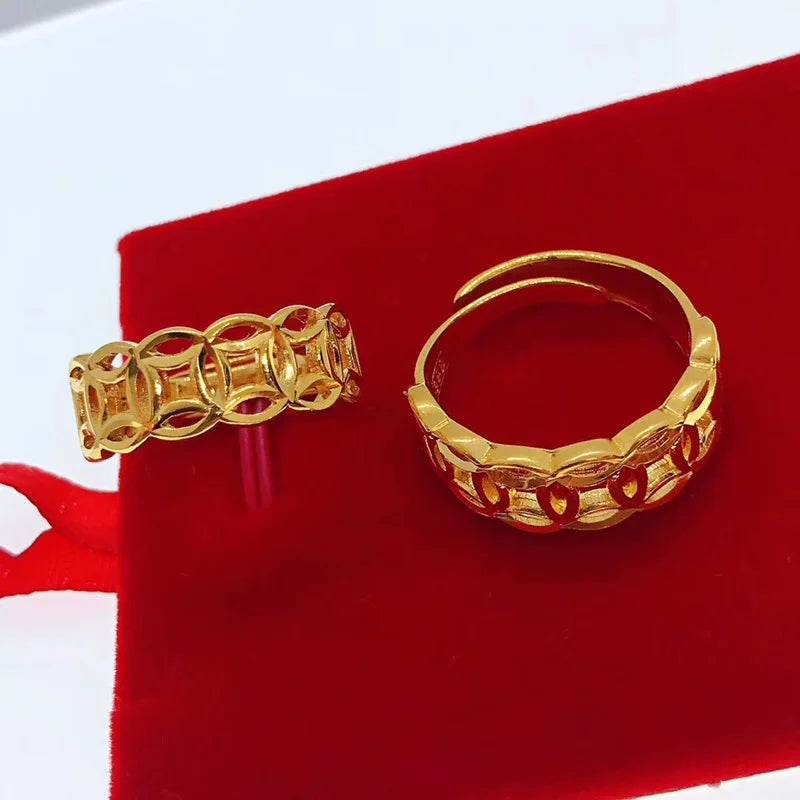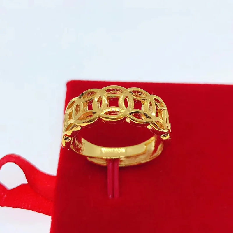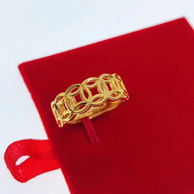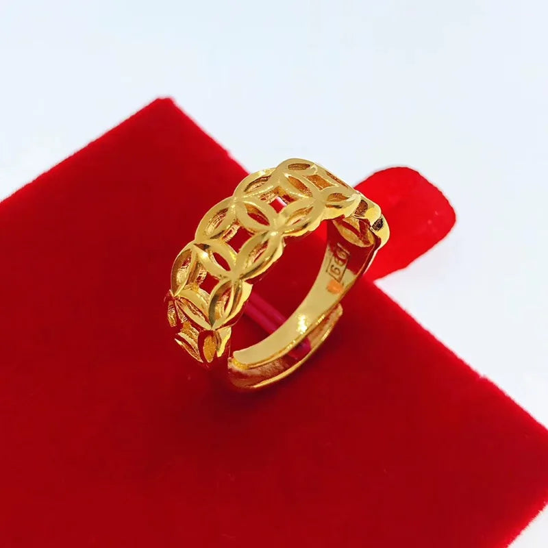 European Hot Woman Man Party Gift Coin Hollow Out 24KT Ring