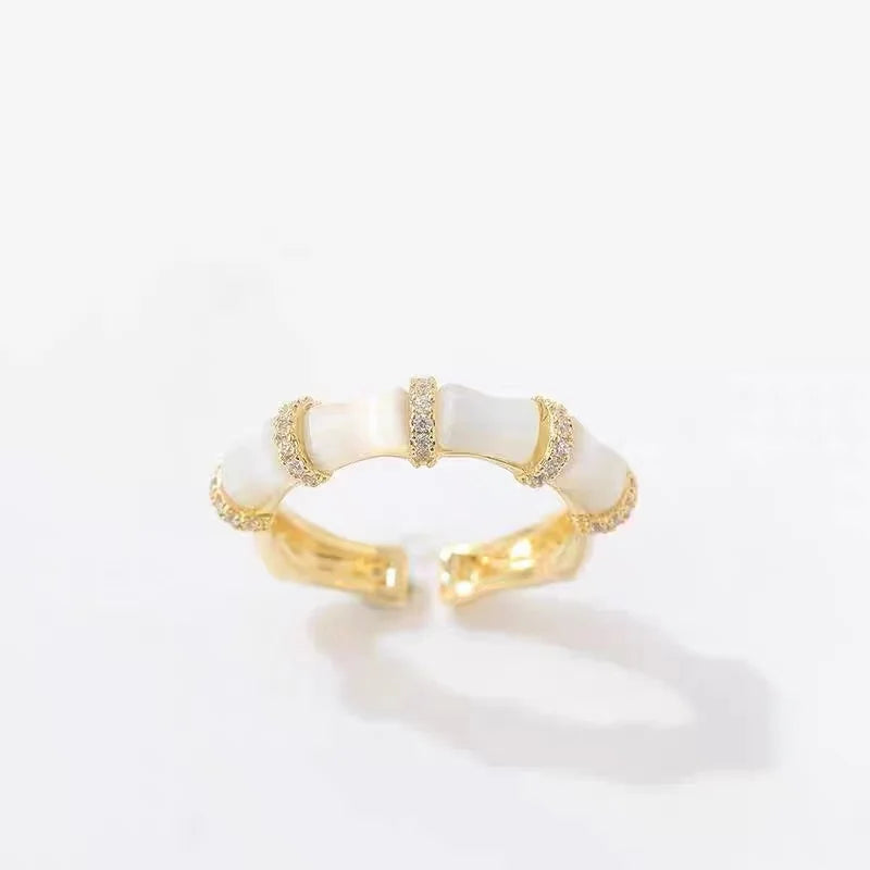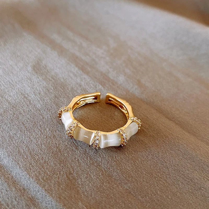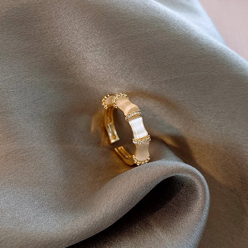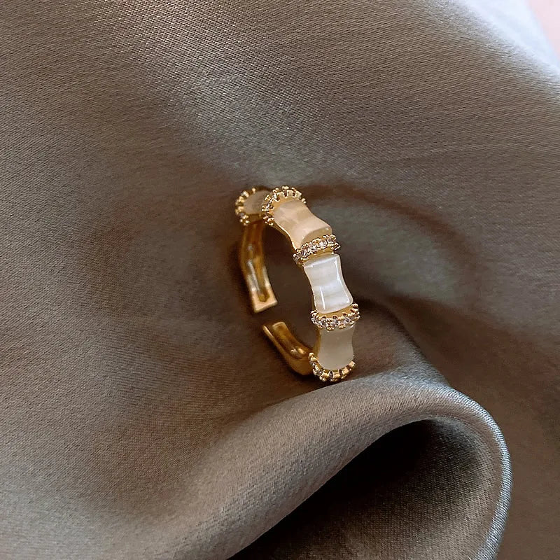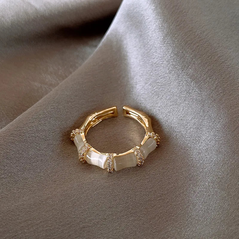 Elevate your daily work look with this stunning French jewelry ring featuring zircon and opal elements. The ring is adjustable, making it a versatile accessory for any occasion.