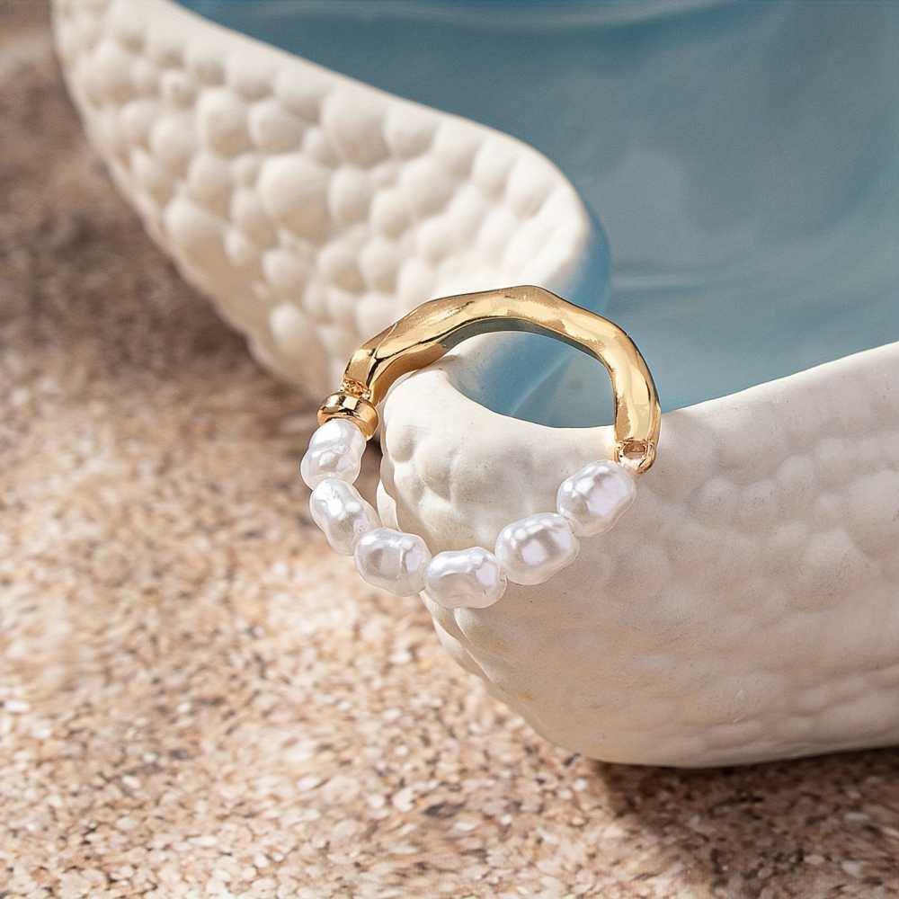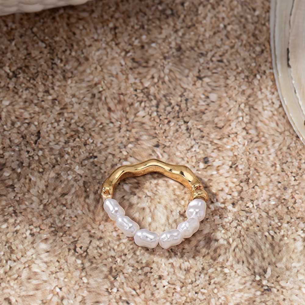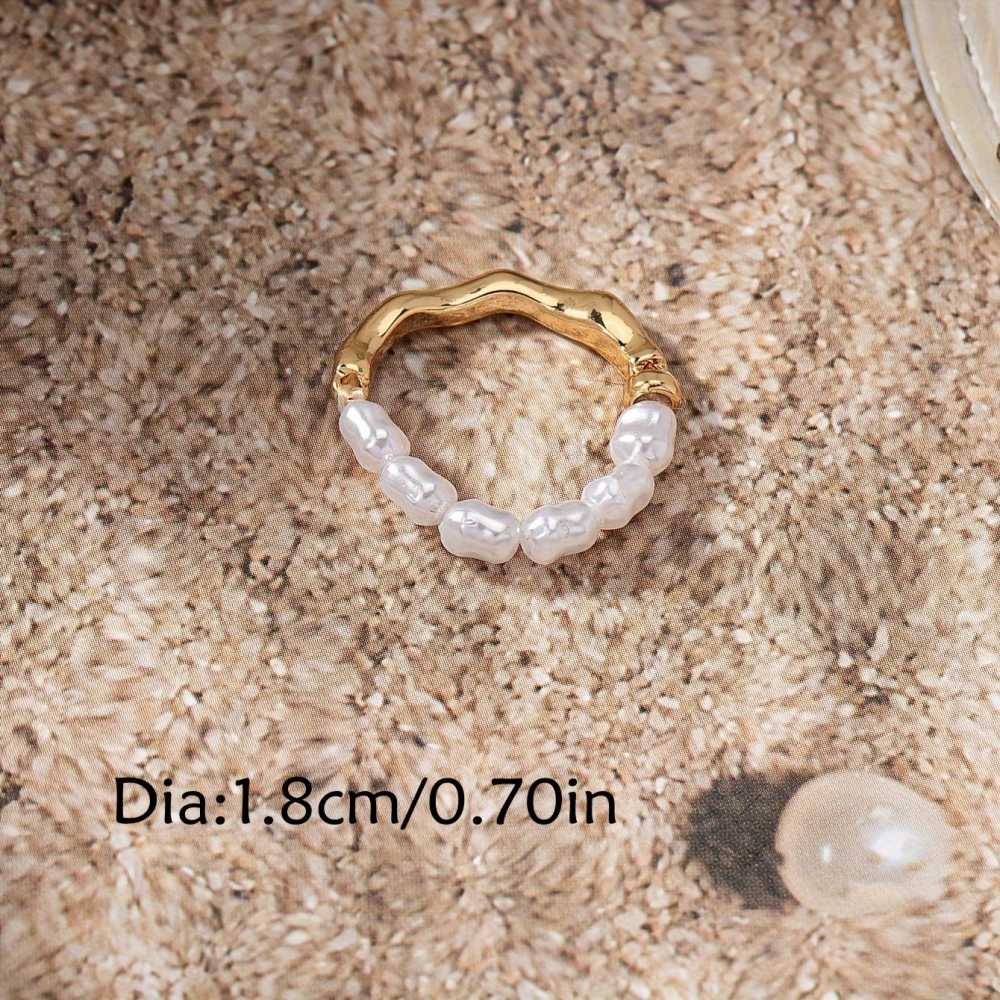 • Product Particulars: This ring is crafted from high-quality zinc alloy, plated with a luxurious golden finish, and adorned with an irregular faux pearl. It is designed with a secure and comfortable stretch fit, ensuring ease of wear for any finger size.