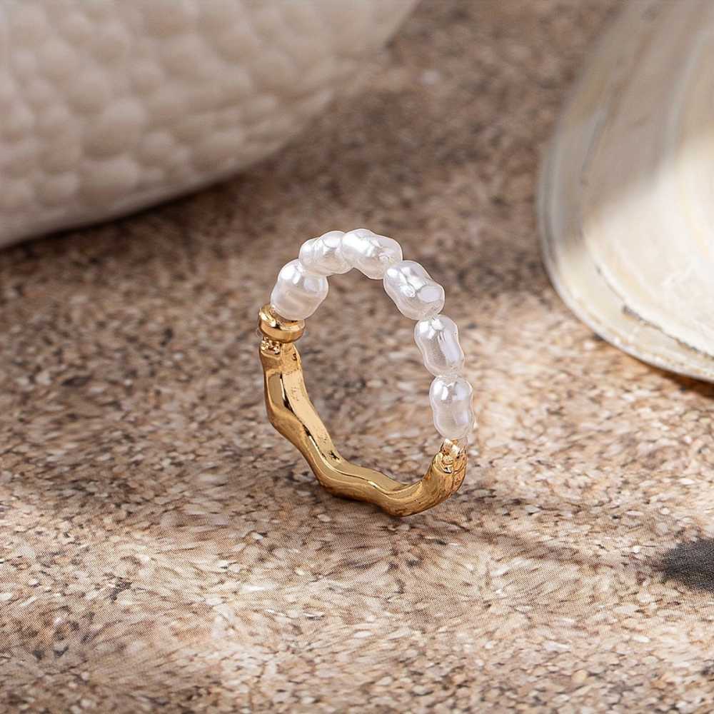 Golden Stretch Ring with Irregular Faux Pearl and Zinc Alloy Design.