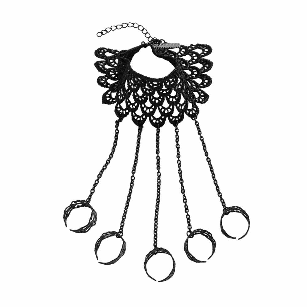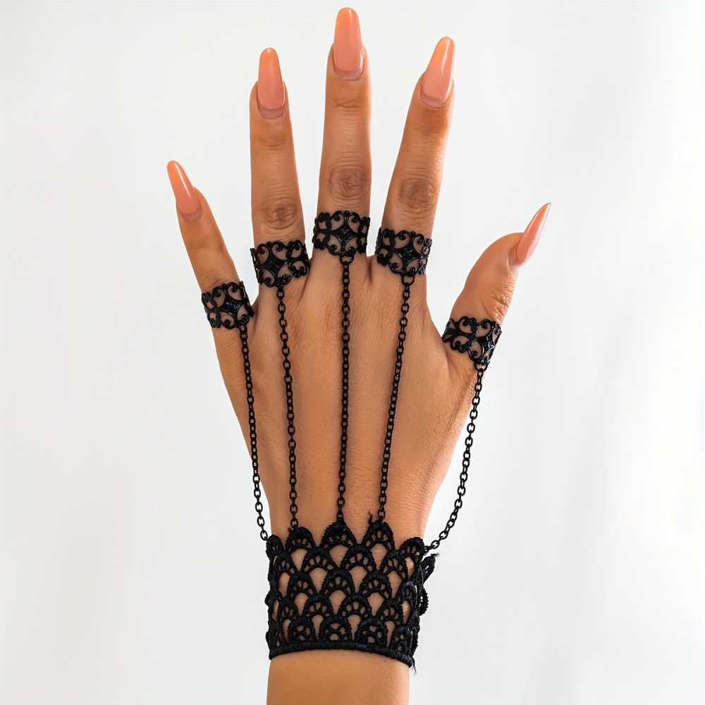 Bling Queen is an affordable fashion jewellery brand with various product types like bracelets, necklaces, earrings, rings, etc. suitable for women, men and kids. Make a bold statement with our Dramatic Exaggerated Lace Mittens, featuring an intricate design paired with a black ring bracelet and hand back chain. These stunning lace mittens add a touch of gothic elegance and sophistication to any outfit, perfect for special occasions or adding a unique flair to your everyday look. The attached black ring bracelet adds a dramatic element, while the delicate hand back chain enhances the overall aesthetic, creating a cohesive and captivating accessory. Ideal for gothic fashion enthusiasts, Victorian inspired looks, or anyone who loves to stand out, these lace mittens are versatile and timeless. Elevate your style with this exquisite piece that effortlessly combines elegance and edginess.