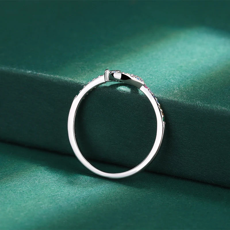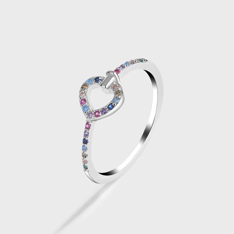 This exquisite rainbow heart cutout full diamond couple ring is the perfect symbol of love and affection. Made with high-quality materials, this original design is sure to captivate hearts.