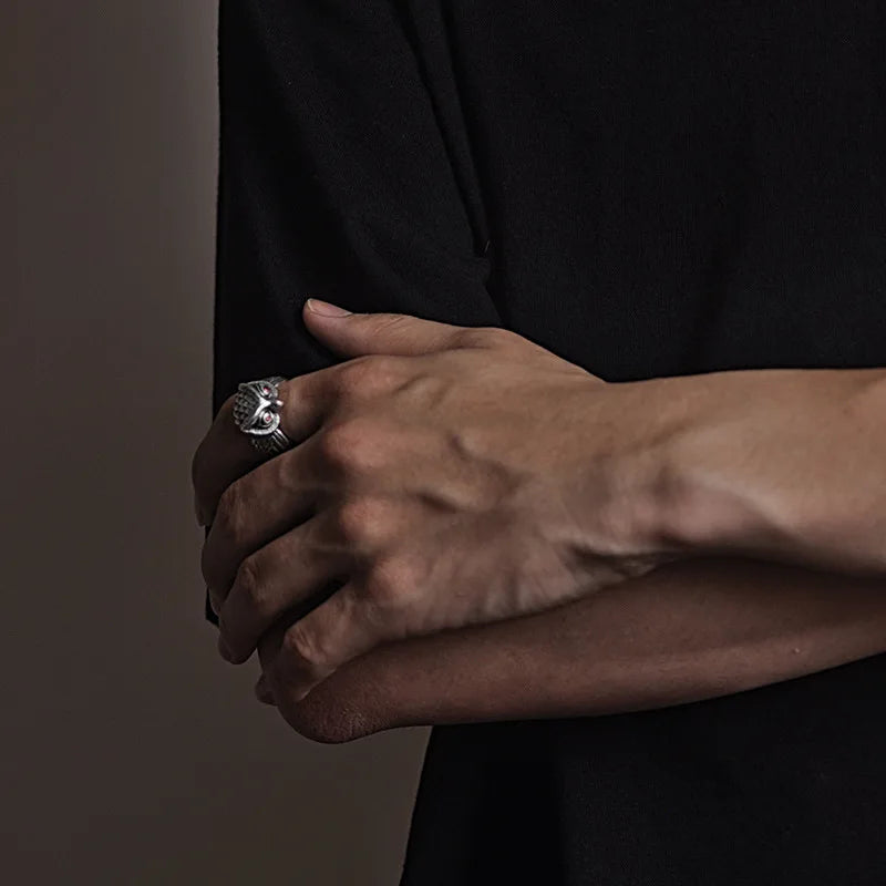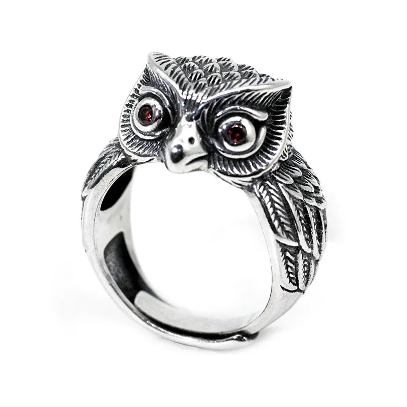 This silver retro owl opening adjustable ring is a stylish accessory for both men and women. It features intricate owl detailing and is adjustable to fit different finger sizes.