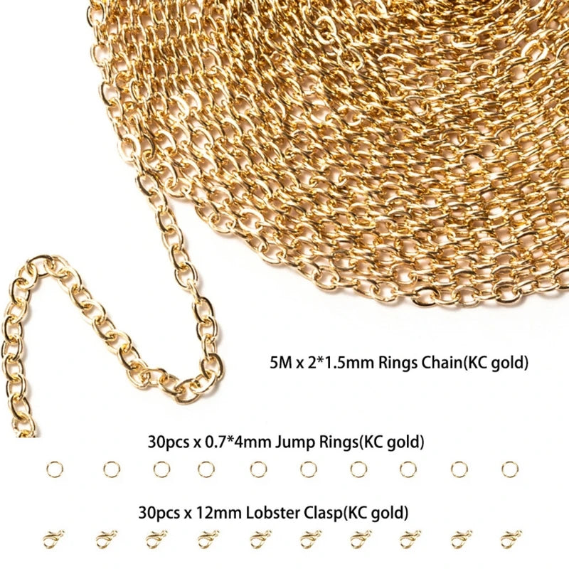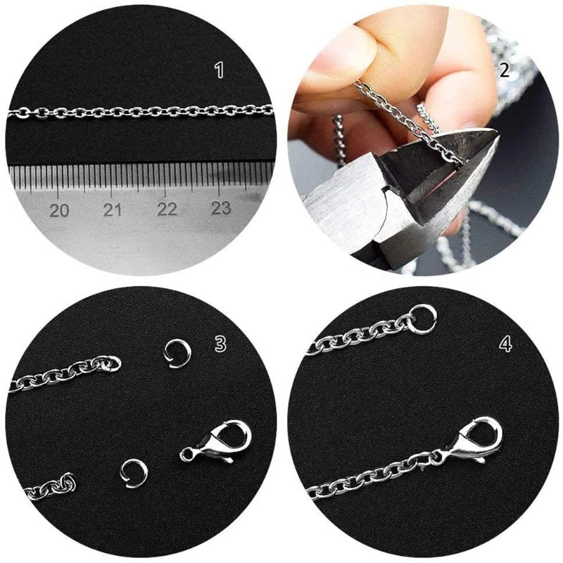 Complete set of jump rings for jewelry making, necklace repair, and crafting. Includes jump rings, lobster clasps, and necklace chain.