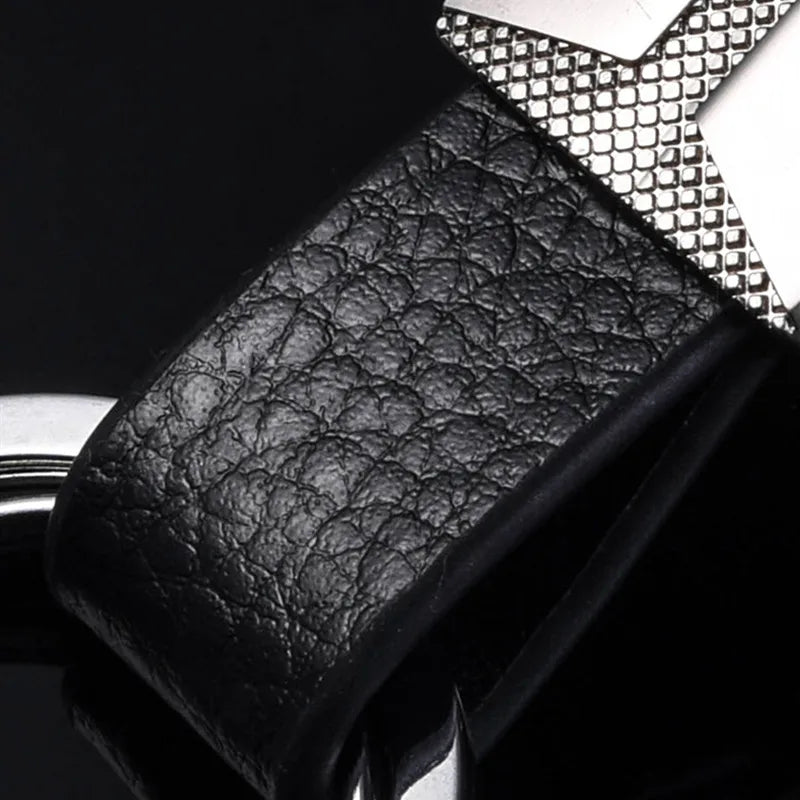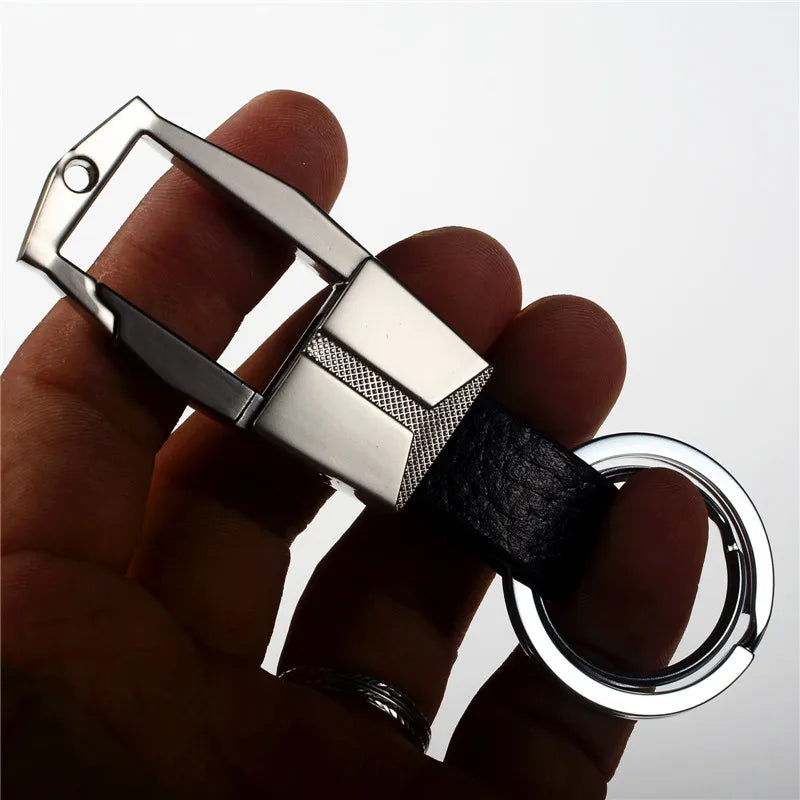 Keep your keys secure and stylish with this men's keychain featuring a leather and metal design. The perfect accessory for your car keys.