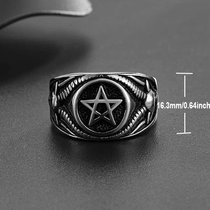 Bling Queen is an affordable fashion jewellery brand with various product types like bracelets, necklaces, earrings, rings, etc. suitable for women, men and kids. Embrace your unique style with our Pentagram Ring for men, a powerful symbol of protection and mysticism. This ring features an intricately detailed pentagram design that stands out, making it is perfect for those who appreciate the occult, Wiccan, or pagan aesthetics. Designed for comfort and durability, this ring is suitable for everyday wear or as a statement piece for special occasions. Whether you're looking to enhance your personal style or seeking a meaningful gift for someone special, this Pentagram Ring adds a touch of dark elegance and mystery to any outfit. Perfect for the modern man who appreciates the blend of vintage charm and contemporary edge.