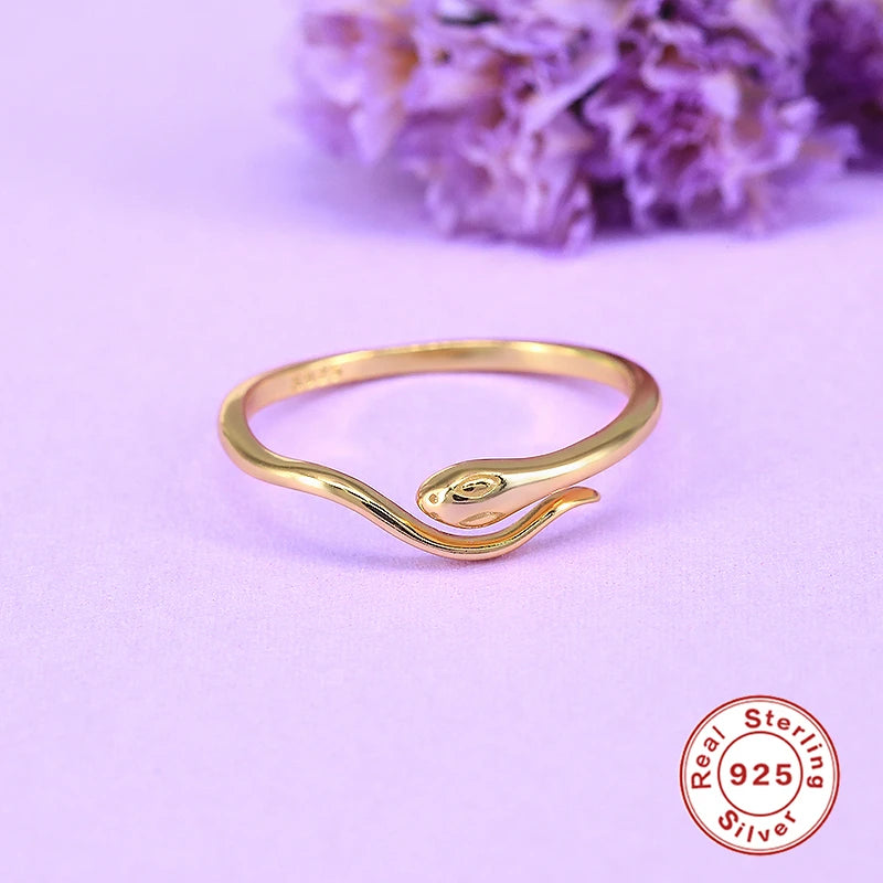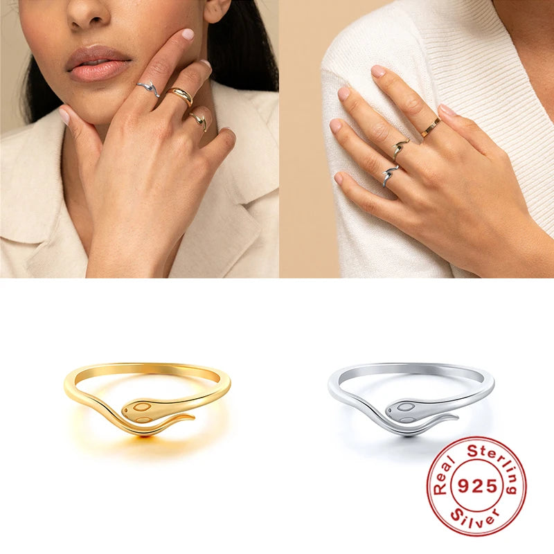 Elegant pair of rings crafted from 925 silver featuring a mini snake design. Available in glossy gold or silver finish.
