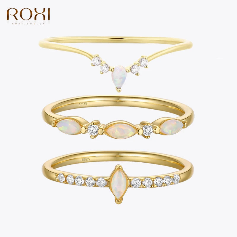 Beautiful opal crystals ring made of 925 sterling silver, perfect for weddings or special occasions. Anillos bague femme plata 925.