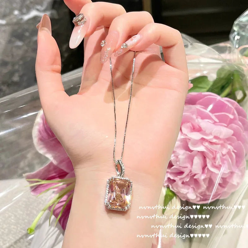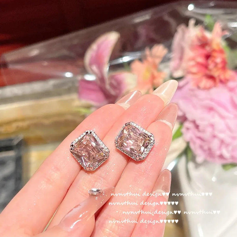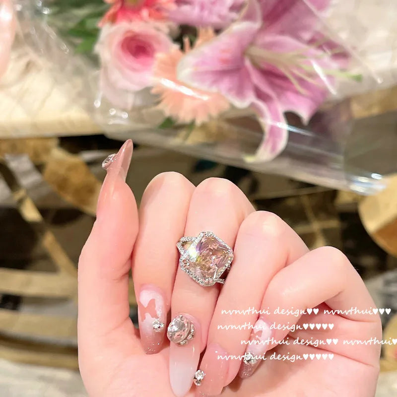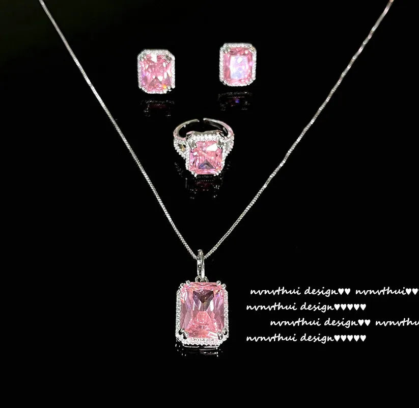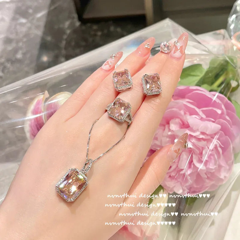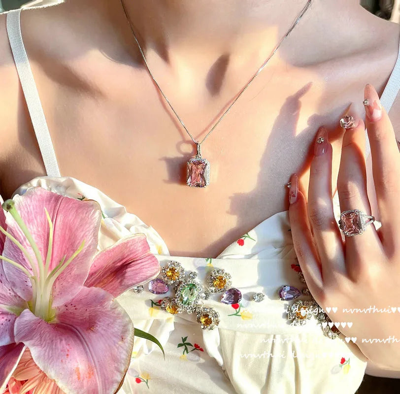 Elegant princess cut pink lab diamond ring in noble silver with sparkling CZ crystals. Perfect for weddings, engagements, and a special gift for brides.