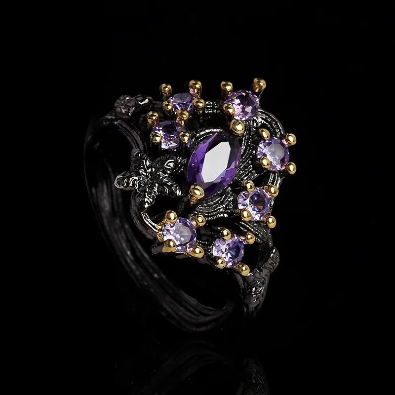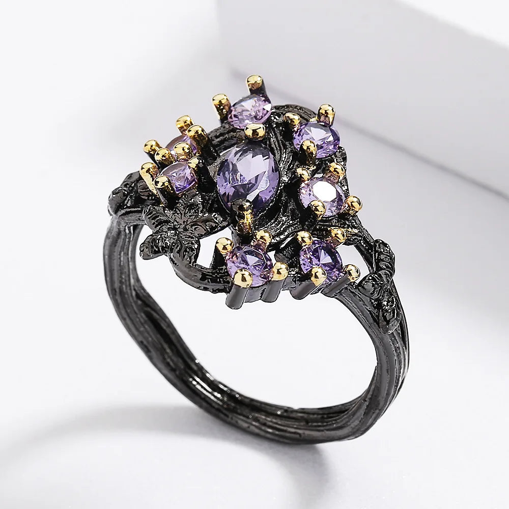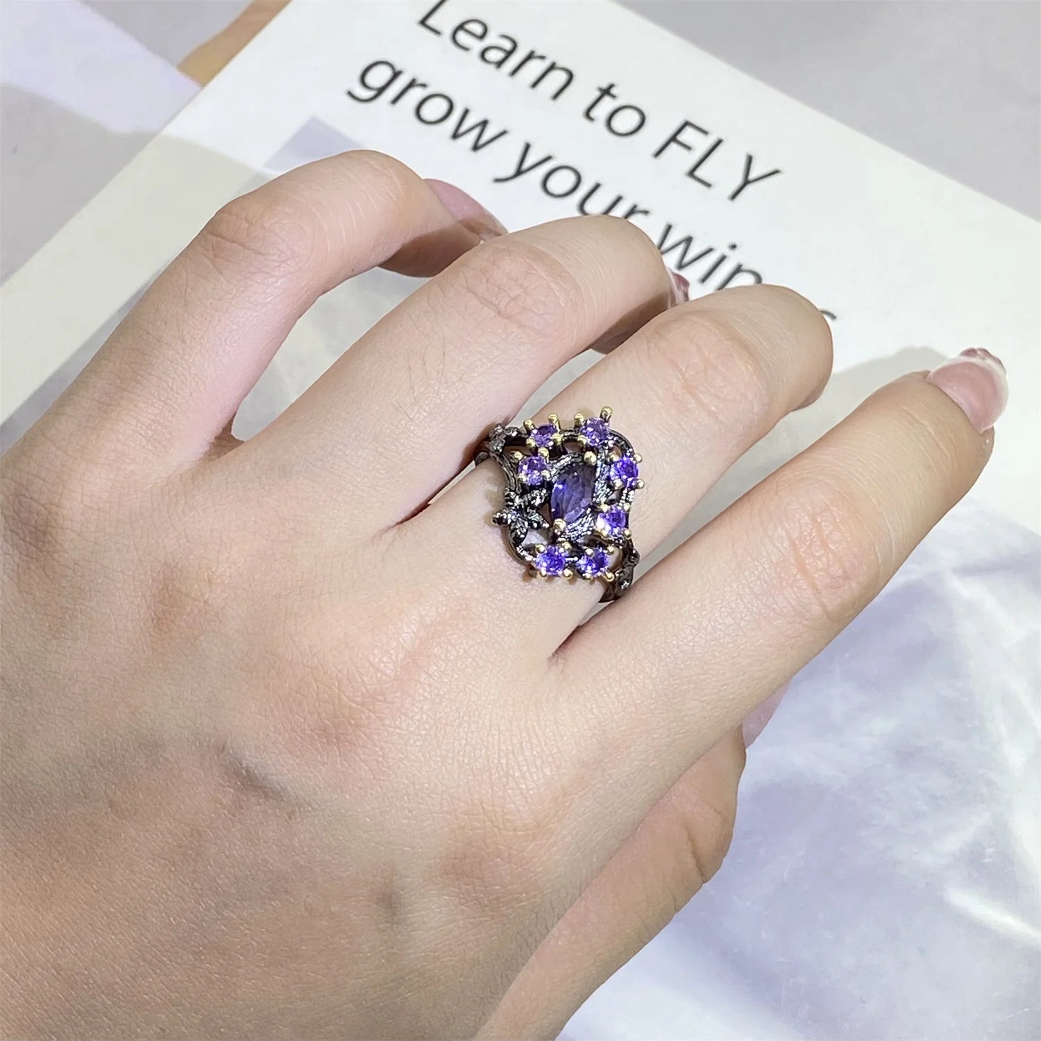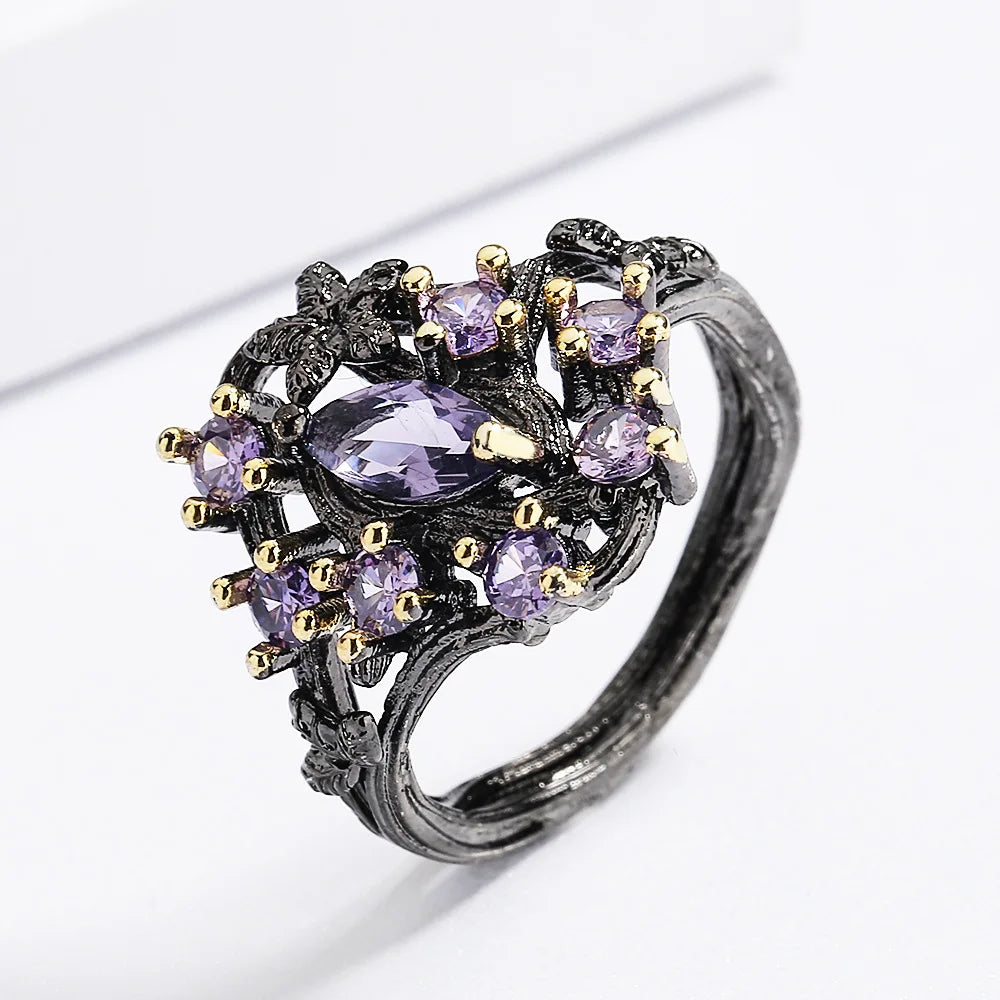 Elevate your style with this stunning purple zircon women's ring and two-tone flower ring. Perfect for high-end parties or as an anniversary gift.