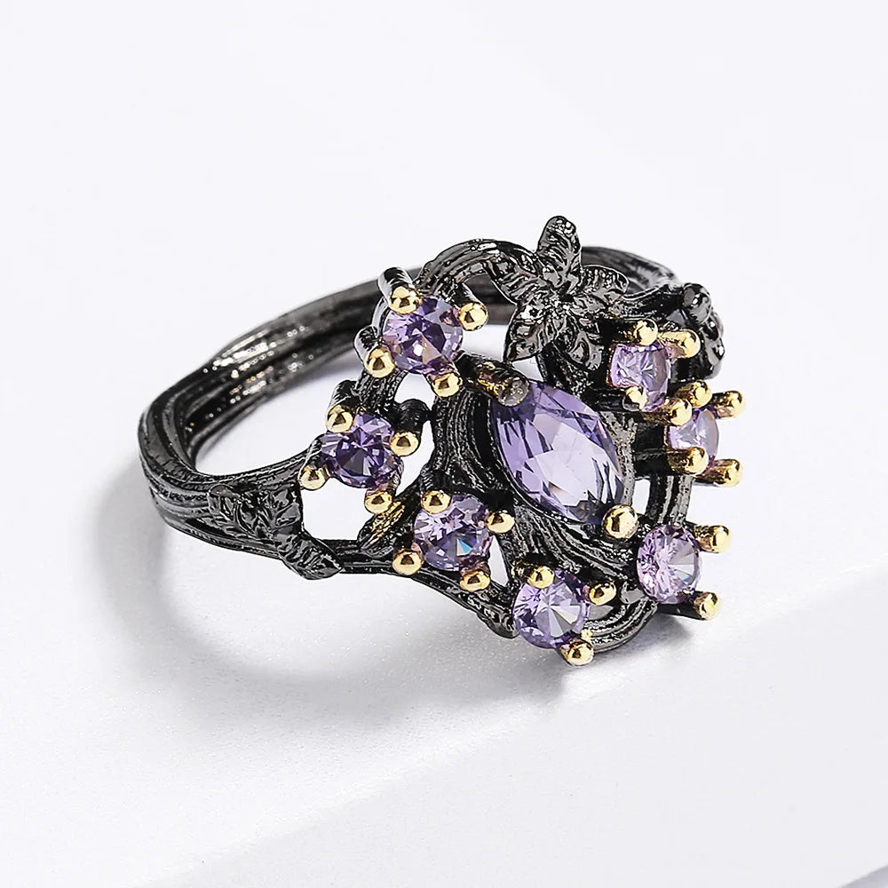 Purple Zircon Women's Ring & Two-tone Flower Ring Party Jewelry Gift