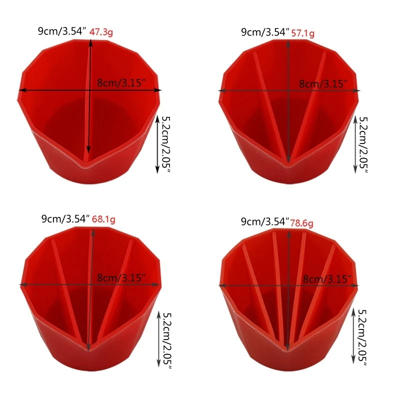 This lightweight paint injection cup features dividers for creating unique acrylic pouring designs. It's perfect for experimenting with different color combinations.