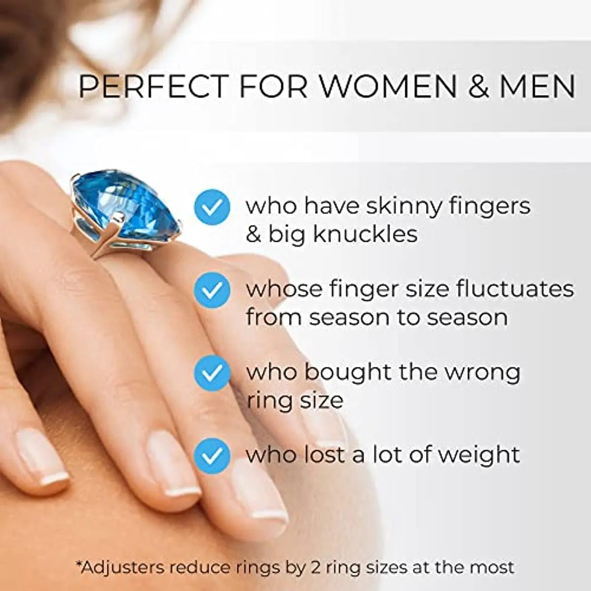 This 12-pack of ring sizer adjusters includes 2 sizes for different band widths, providing a comfortable fit for loose rings. Made of silicone, these invisible ring guards are suitable for both women and men.