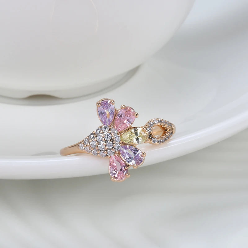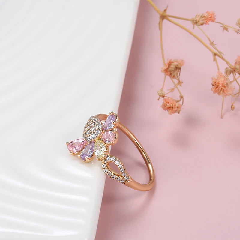 This charming 585 Rose Bee ring is perfect for engagements, weddings, or as a fine jewelry gift. Zircon micro inlay adds a touch of elegance.