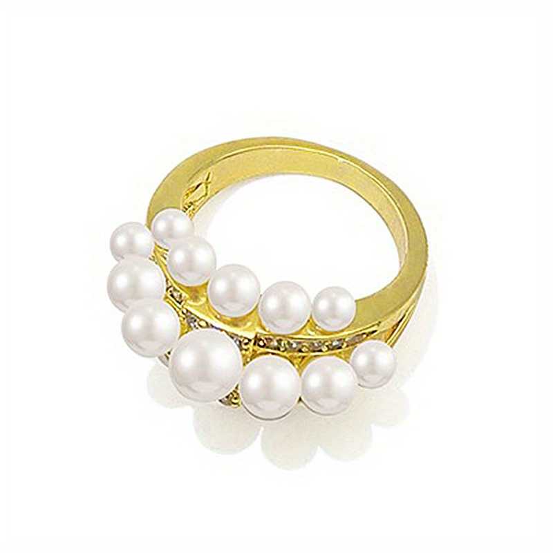 Shimmering Faux Pearl And Zircon Adjustable Ring.