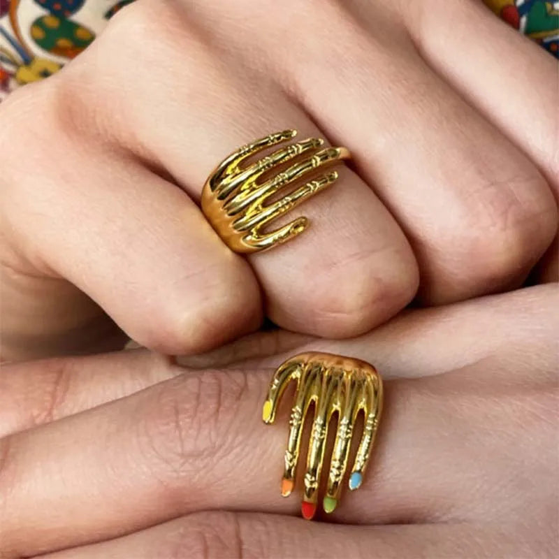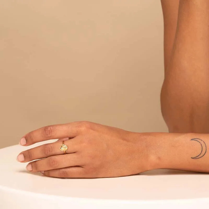 This stunning silver rainbow oval diamond zircon ring is designed for women looking for a unique accessory that symbolizes the beauty of a hand encircling the moon.