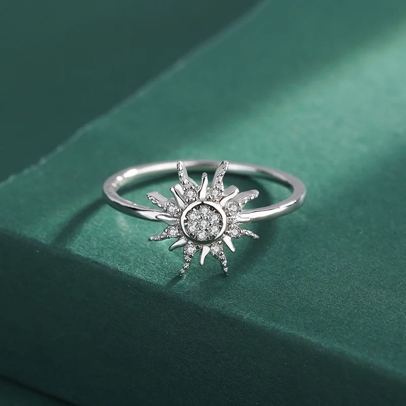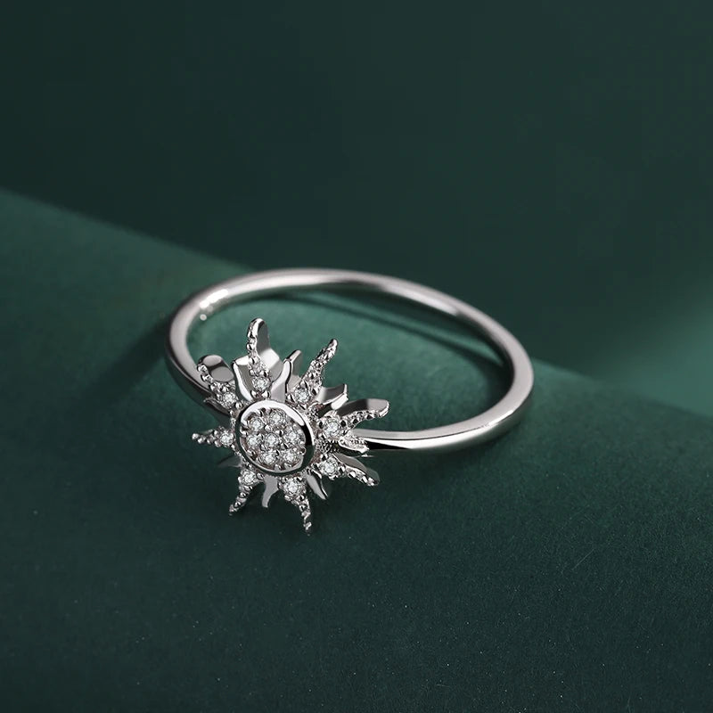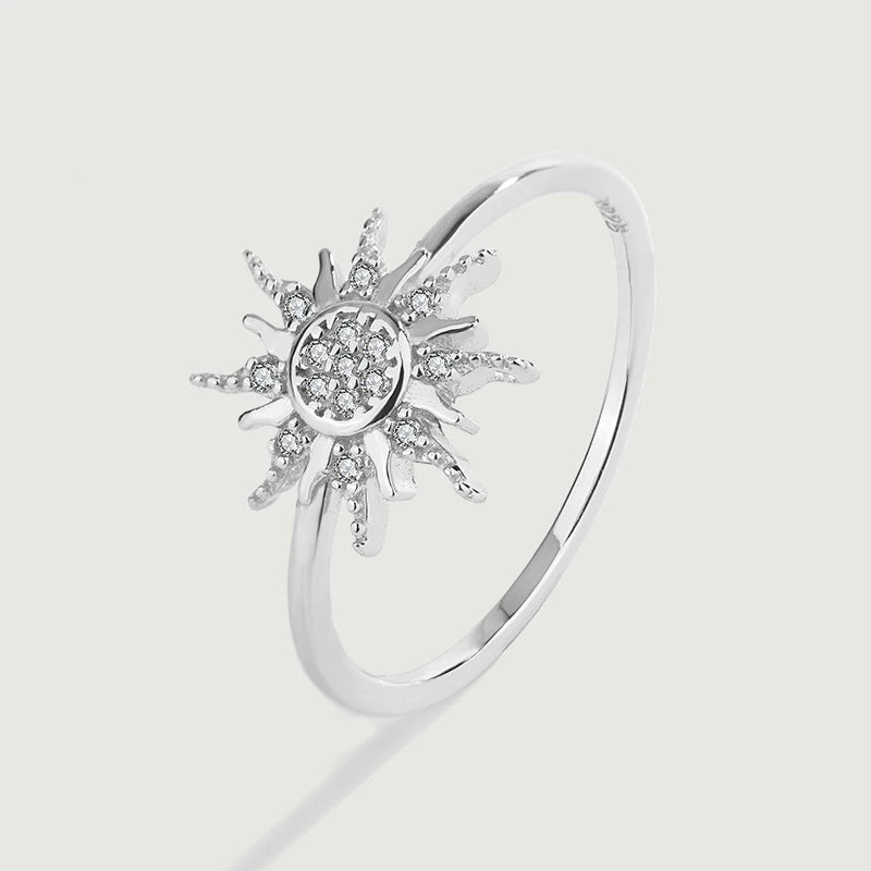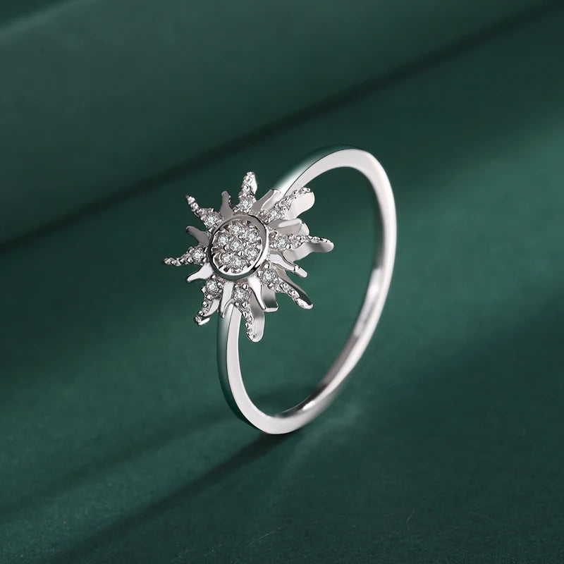 This beautifully crafted sunflower sterling silver ring features a design full of sparkling diamonds. It is a perfect accessory for couples or as a gift for your loved one.