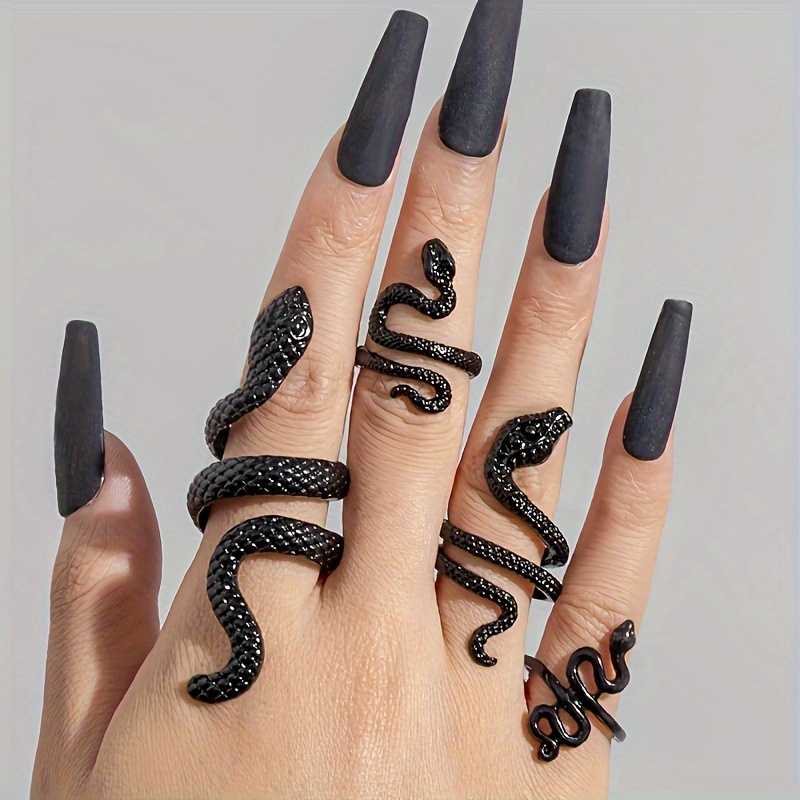 Women's 4pcs Vintage Gothic Reptile Serpent Snake Ring Set