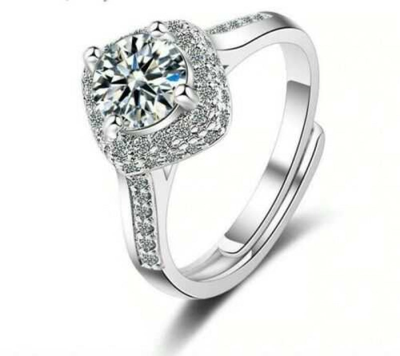 A classic stunning ring! This sparkling round masonite cubic zirconia at the centre is wrapped in an open double frame of crystals haloes in a trillion shape. The shank of this beautiful adjustable ring glistens with crystals for a dazzling finish. This ring for women offers an eye-catching style and captivates everyone's attention. This is an ideal gift for her and can be gifted for Valentine's day and other special occasions.
