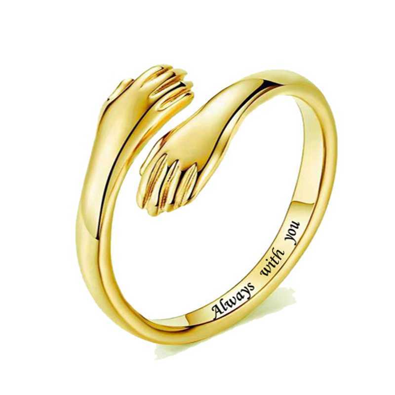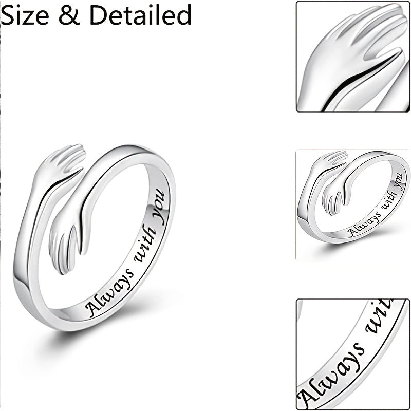Discover the heartfelt essence of eternal companionship with our ring, delicately engraved with the endearing words always with you. This stunning piece embodies a profound connection, symbolizing unwavering support and enduring love. The adjustable design ensures a comfortable and personalized fit, while the engraved sentiment adds an extra layer of meaning, making it an intimate and cherished accessory. The hug design of this ring gracefully intertwines, symbolizing an eternal embrace, and serves as a reminder of cherished connections. Crafted with attention to detail, this ring gleams with a timeless elegance, reflecting the bond that transcends distance and time. Let this beautifully crafted ring serve as a constant reminder of the everlasting presence of love and devotion.