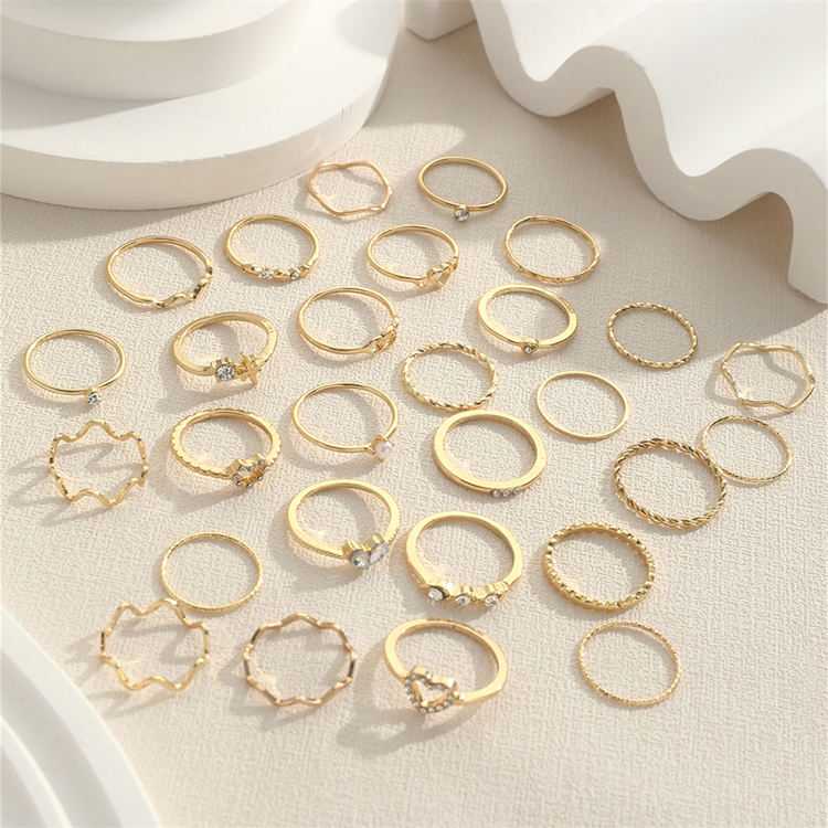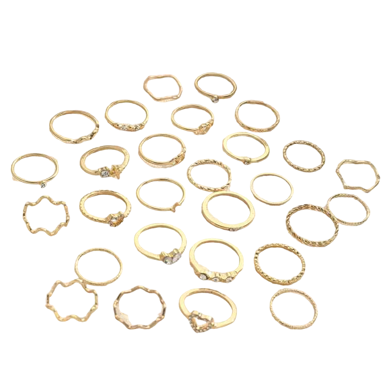 Women's Gold Plated Combo Of 28 Pieces Stacking Ring with Geometric Designs
