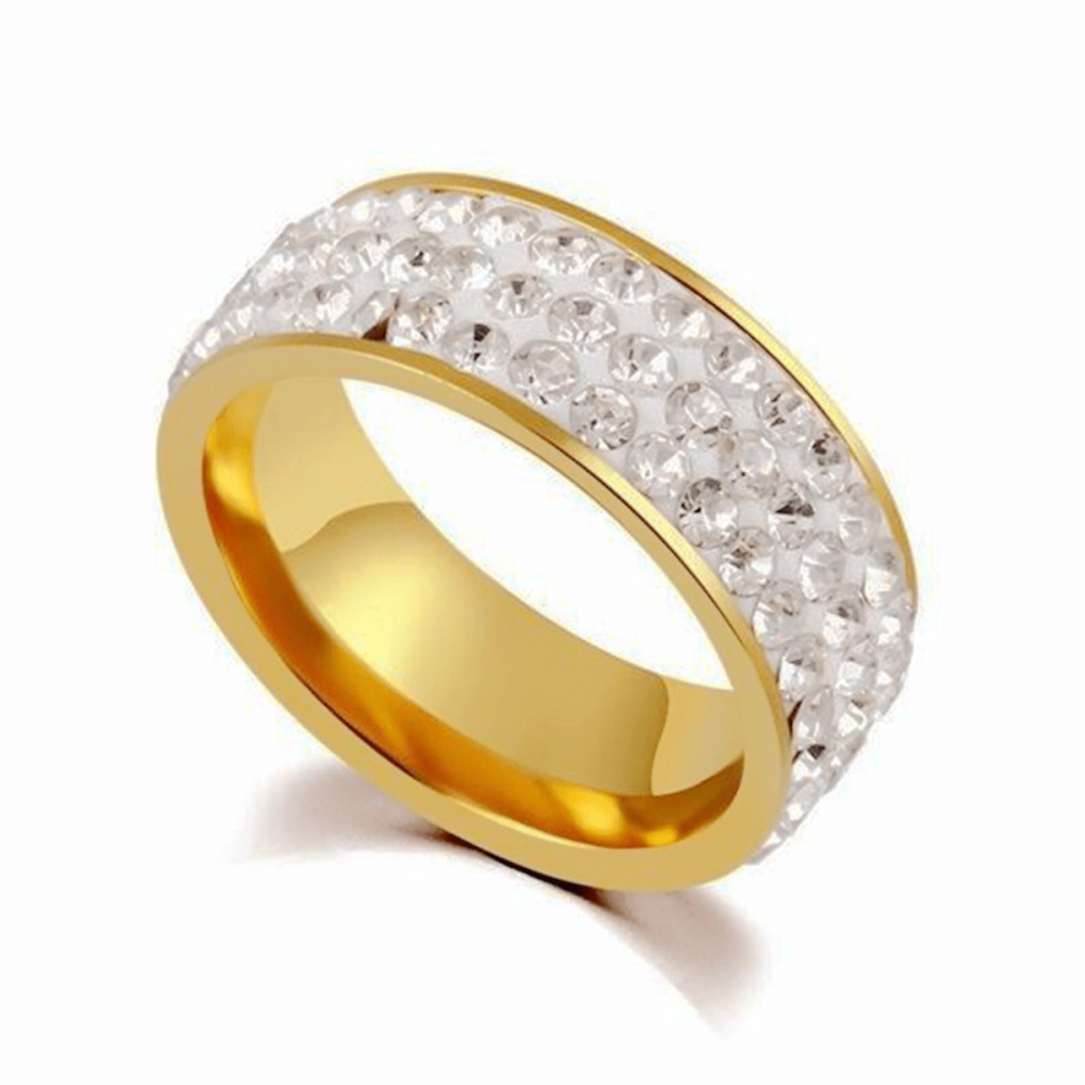 Women's Gold Plated Wide Band Ring With Cubic Zirconia