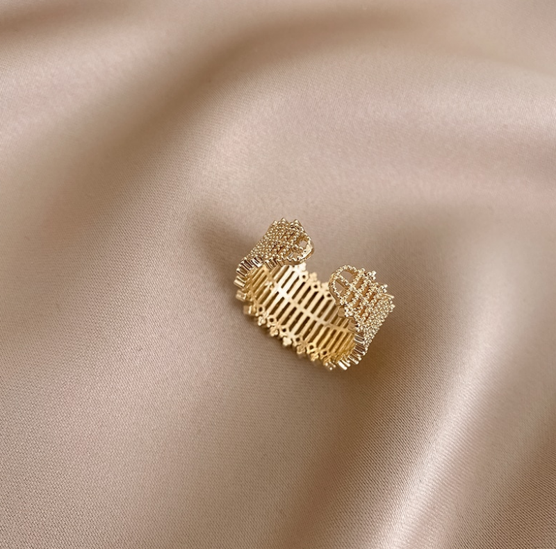 Women's Metal Hollow Mesh Open Ring With Cubic Zirconia