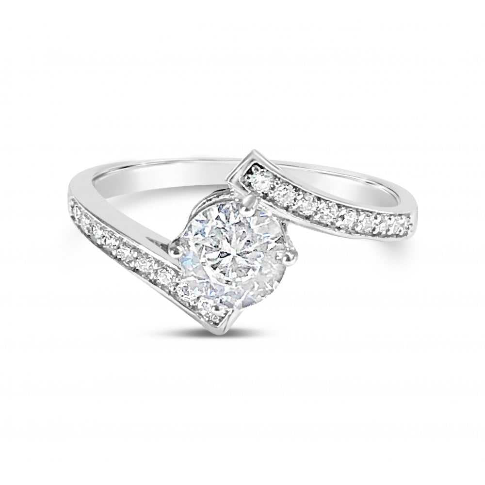 Women's Rhodium Plated Twisted Ring With Cubic Zirconia Stones
