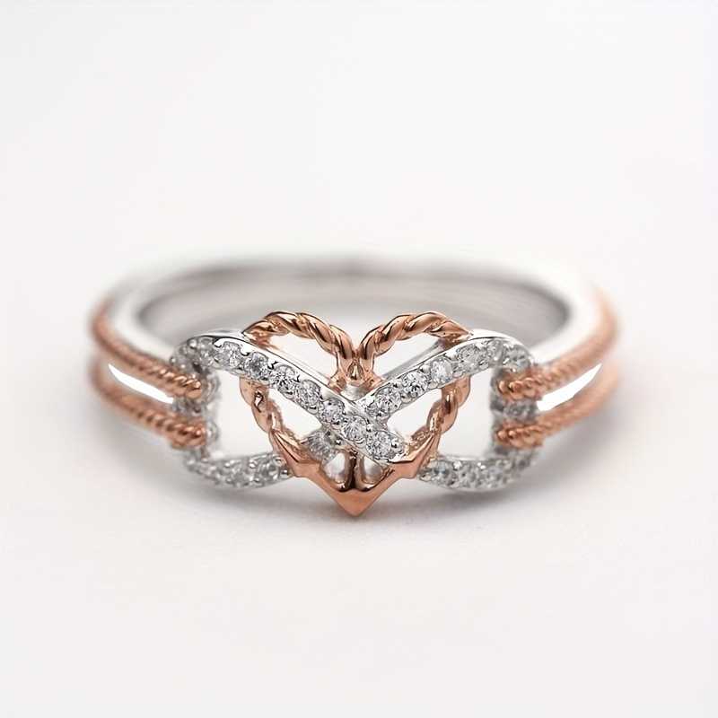 Women's Rose Gold Cubic Zirconia Interlocking Heart Infinity Ring