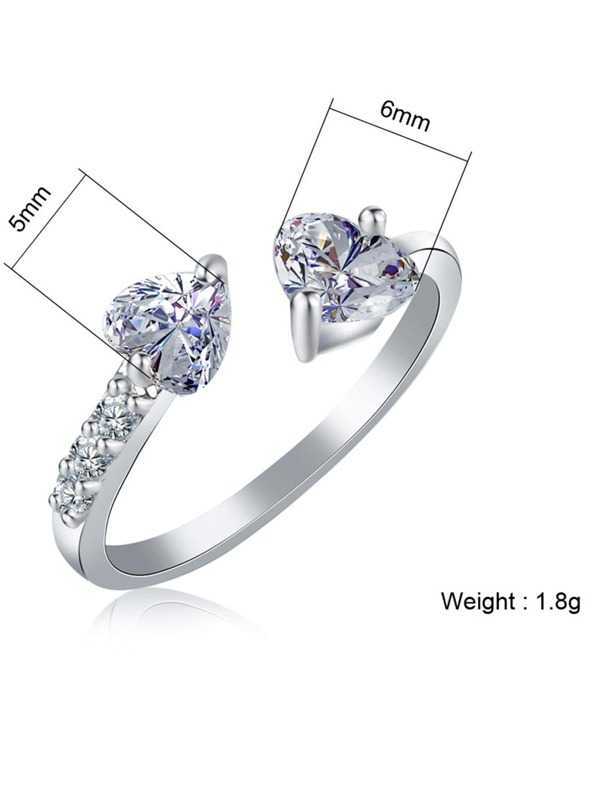 Women's Silver Plated Adjustable Heart Ring With Cubic Zirconia