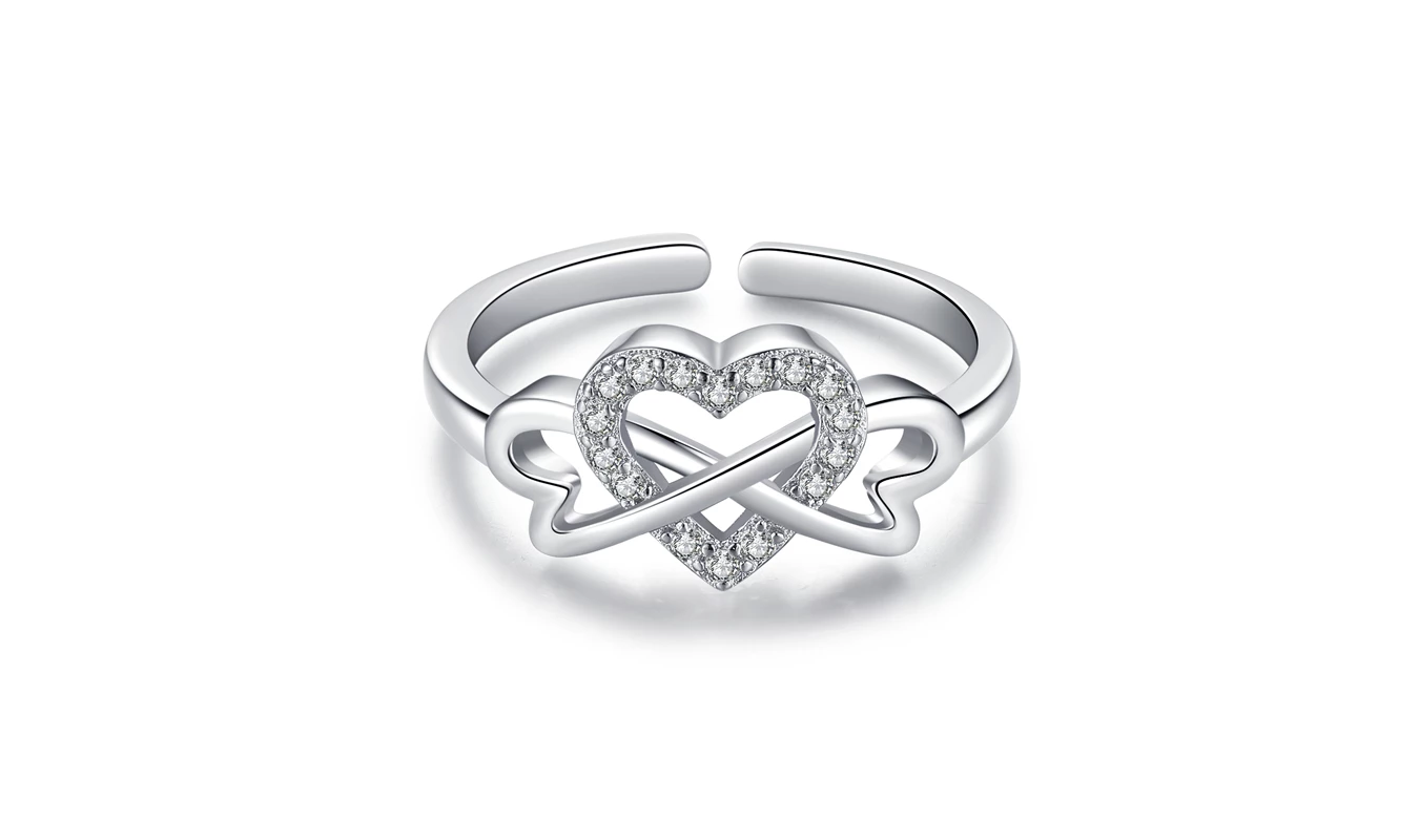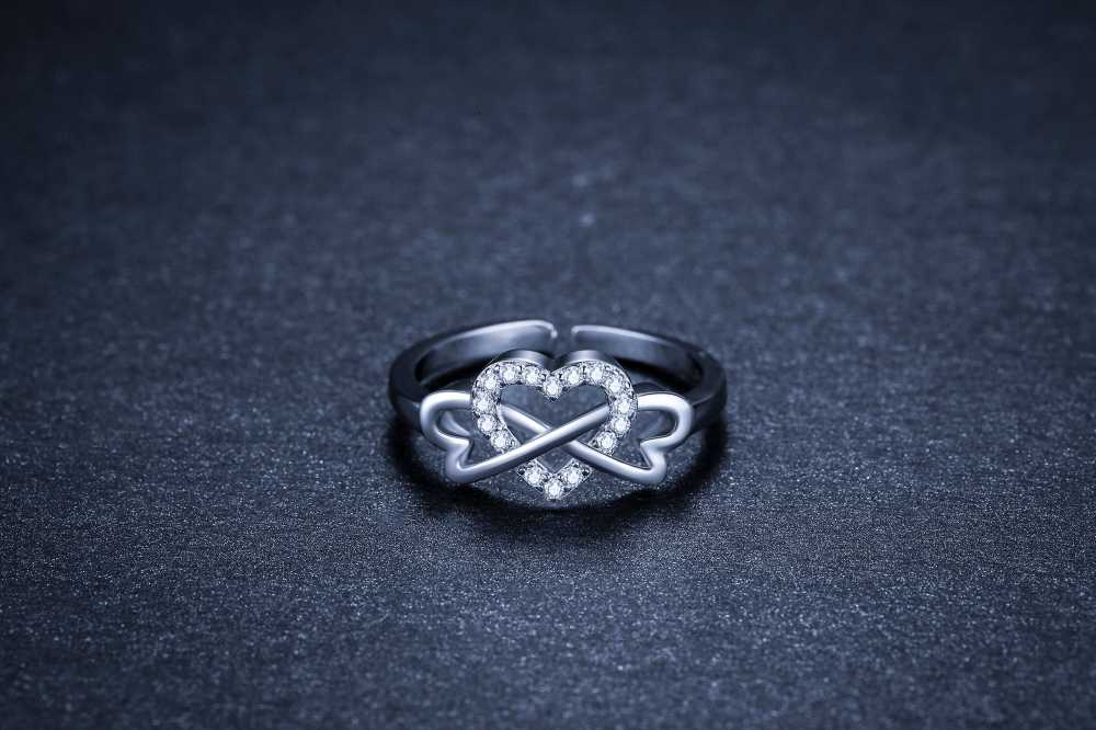 A ring that attracts all eyes! Elaborately made from silver plated metal, this ring for women dazzles with its fine looks. Show self-love or a loved one infinite affection by choosing this love infinity ring! The heart-shaped zirconia stones set in the ring sparkles at any time on the wearer's finger. Also as an individual piece on the finger, this ring glitters beautifully and thereby, attracts all eyes.