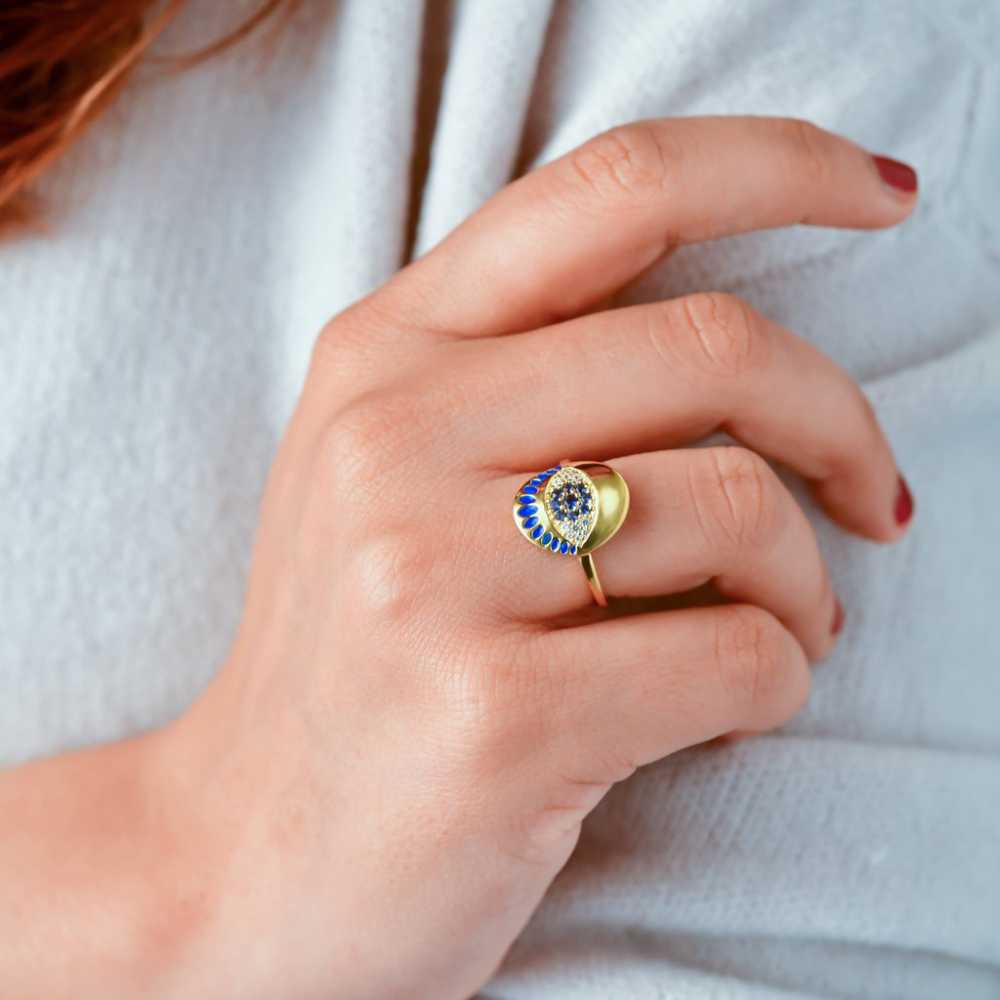 This evil eye protection adjustable ring is a gentle reminder that one must spread love and positivity. The ring is embellished with cubic zirconia and enamel. It is suitable to be worn for all occasions.