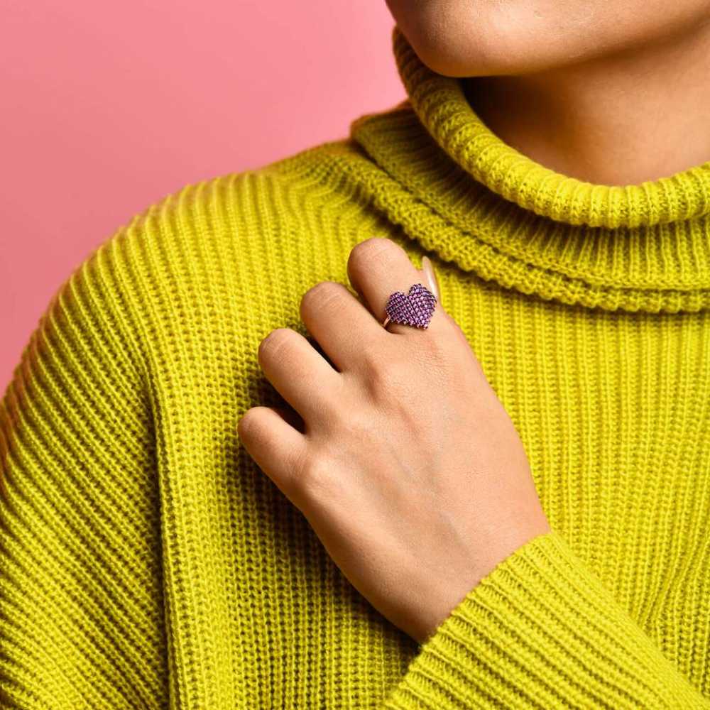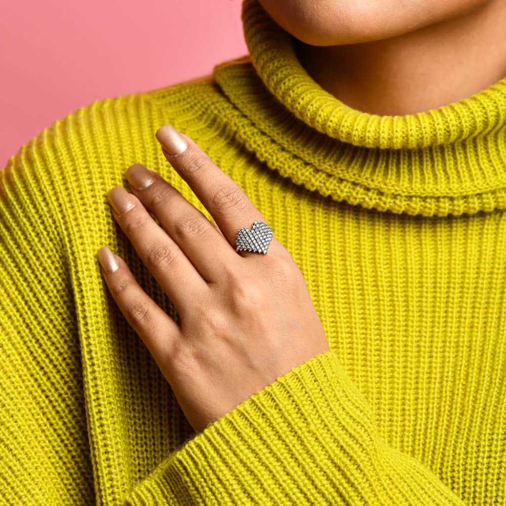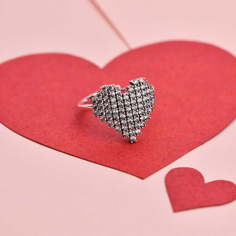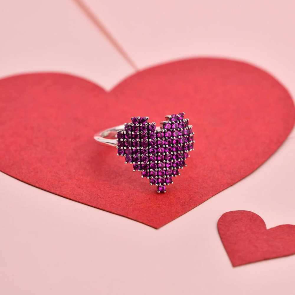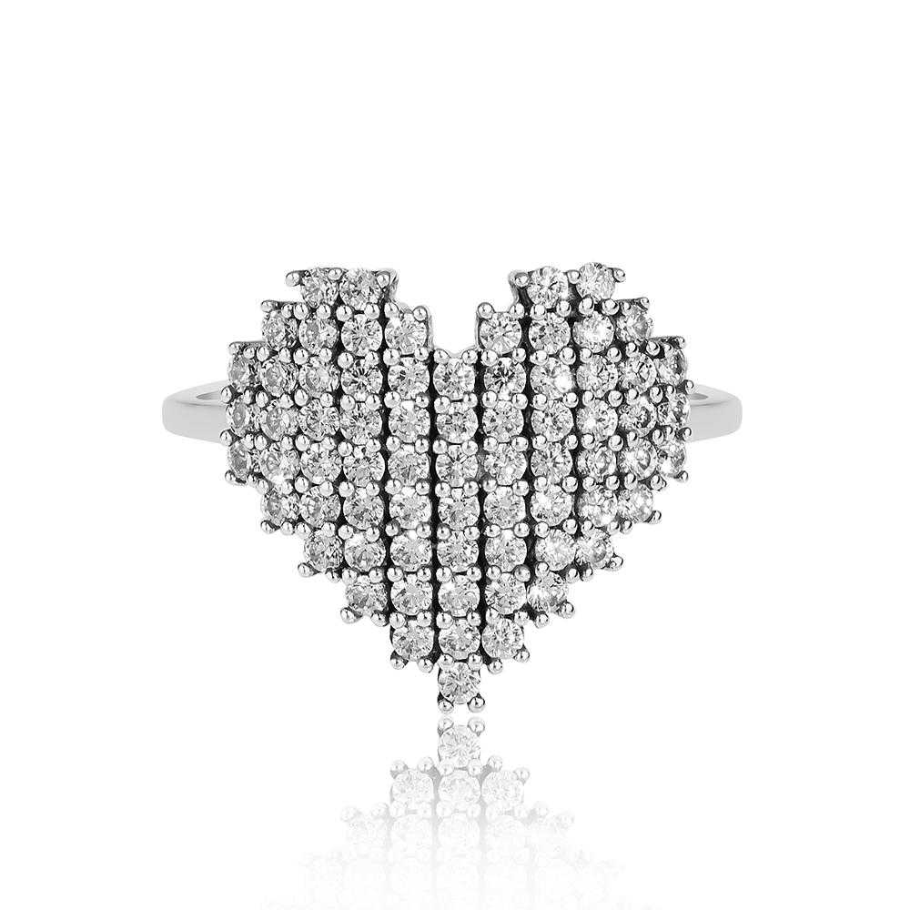 The delicate and precisely crafted sparkling heart ring is beautifully adorned with cubic zirconia. This heart ring is unique in design with intricate details. An inspiring gift for yourself or your loved ones.