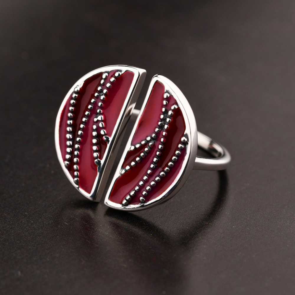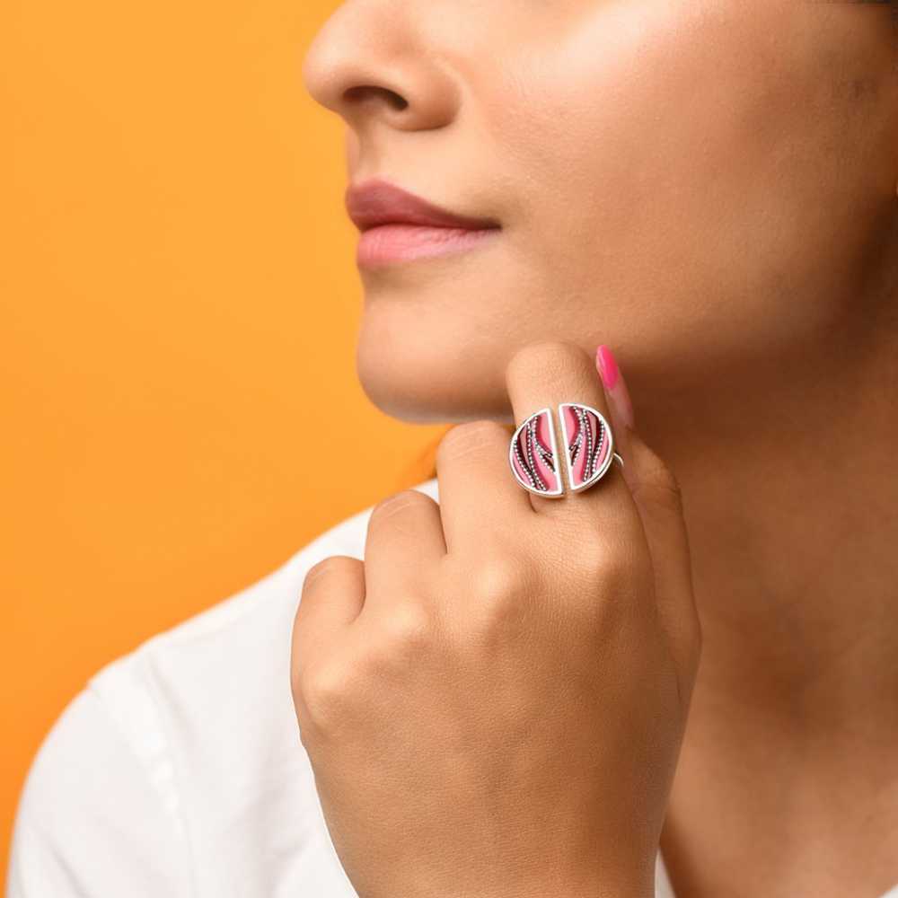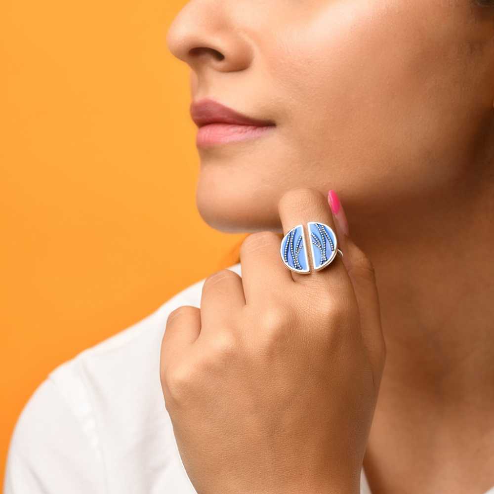 A perfect combination and a smooth blending of two shades. The ring is circular in shape and is divided into two halves. The ring is beautifully adorned with enamel.