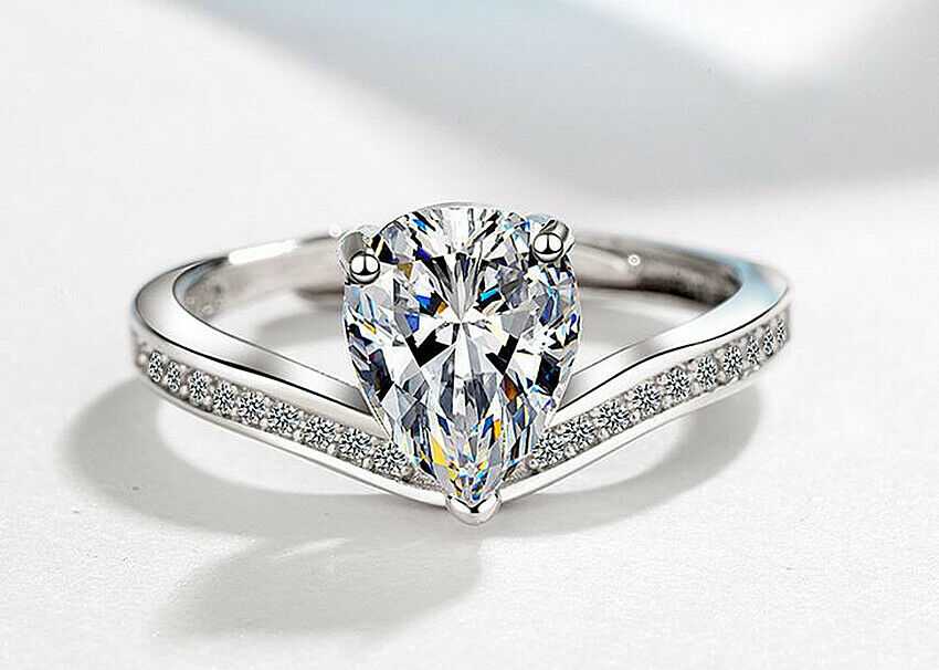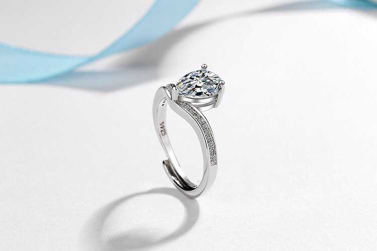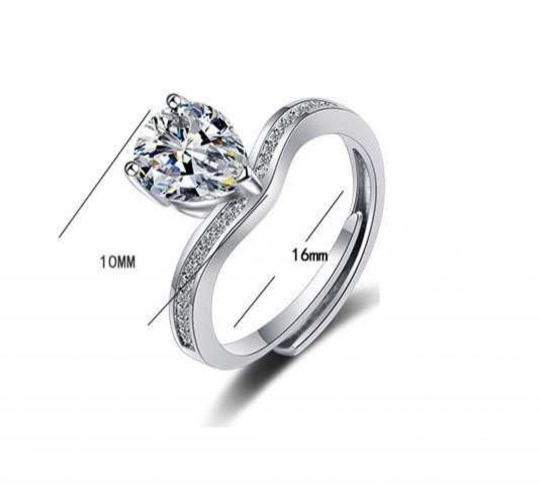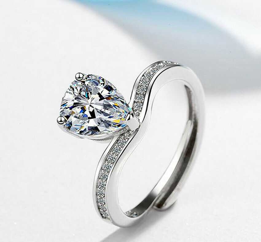 Women's Silver Plated Adjustable Pear-shaped Zircon Ring