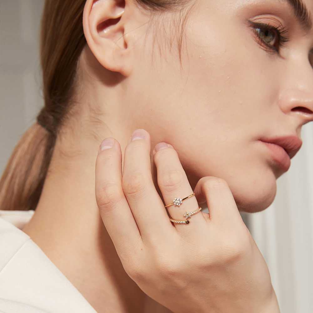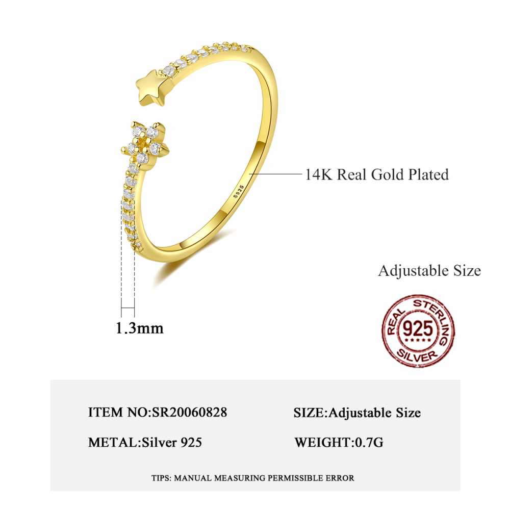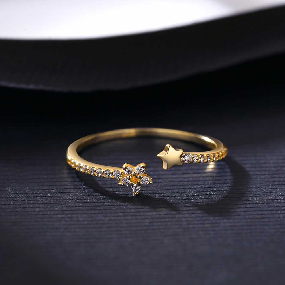 Nature-themed designs to cherish forever. This ring features a petite sculpted polished star on one side and a dainty and petite flower studded with cubic zirconia on the other end. Both shanks shimmer with zirconia that adds extra glam to your fingers.Best gift for her who wants to wear the beauty of nature on her finger.