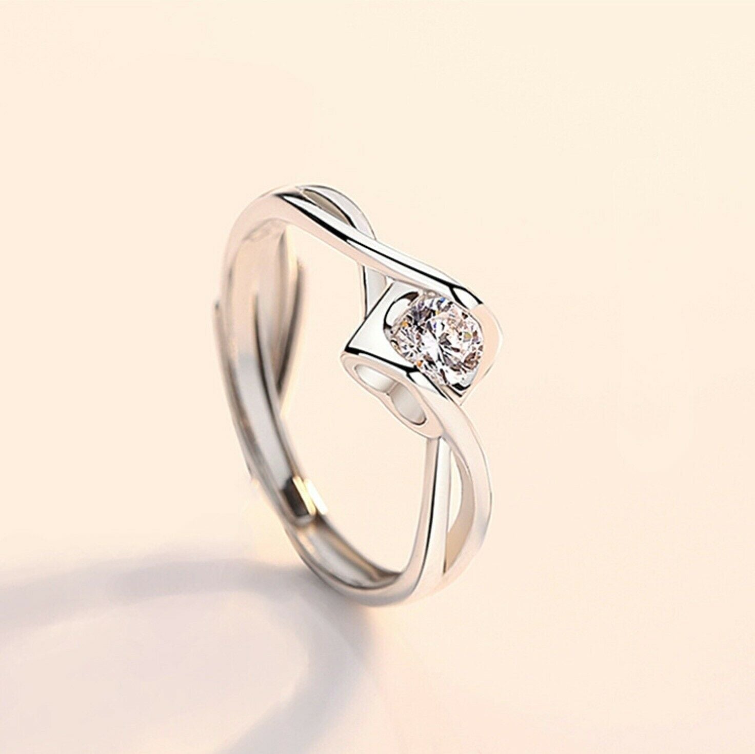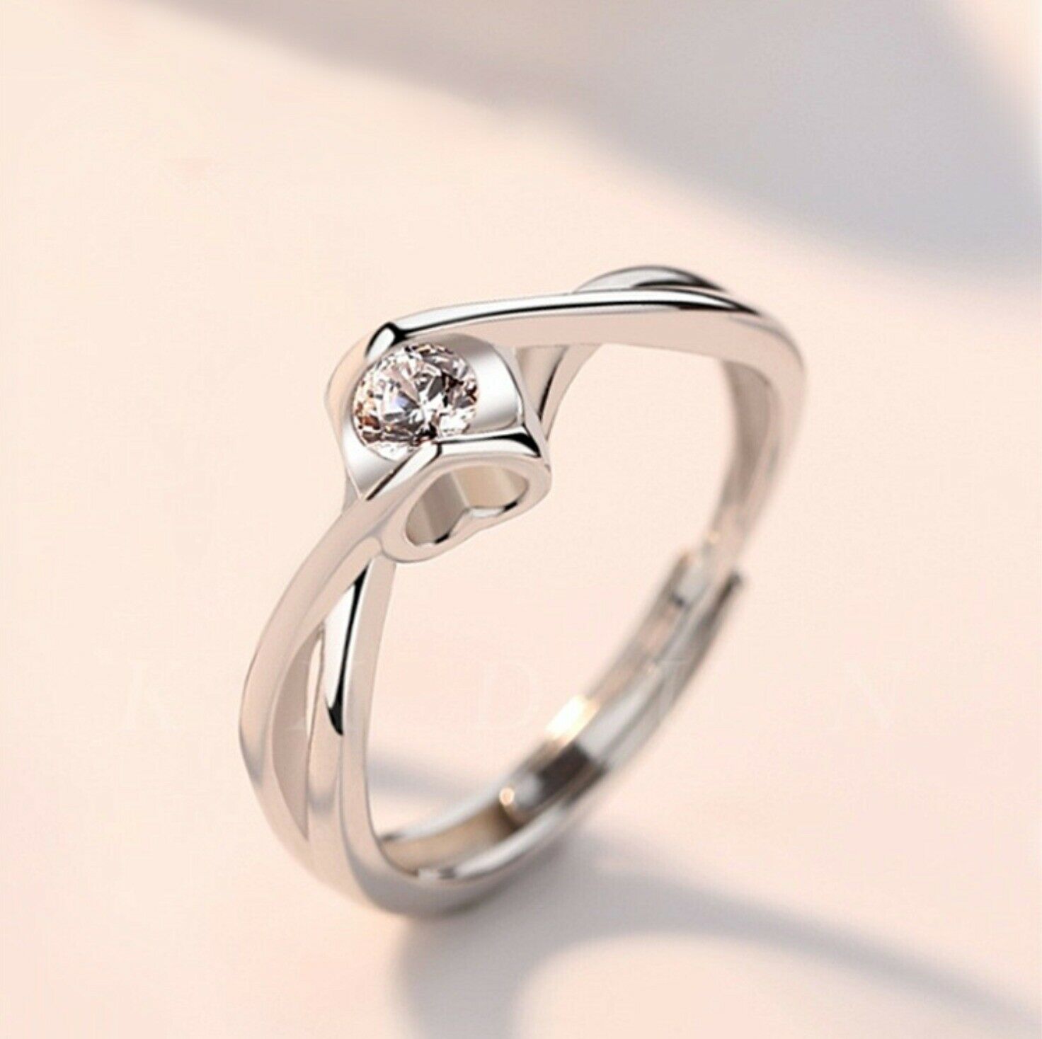 Women's Silver Plated Heart Twisted Stone Adjustable Ring