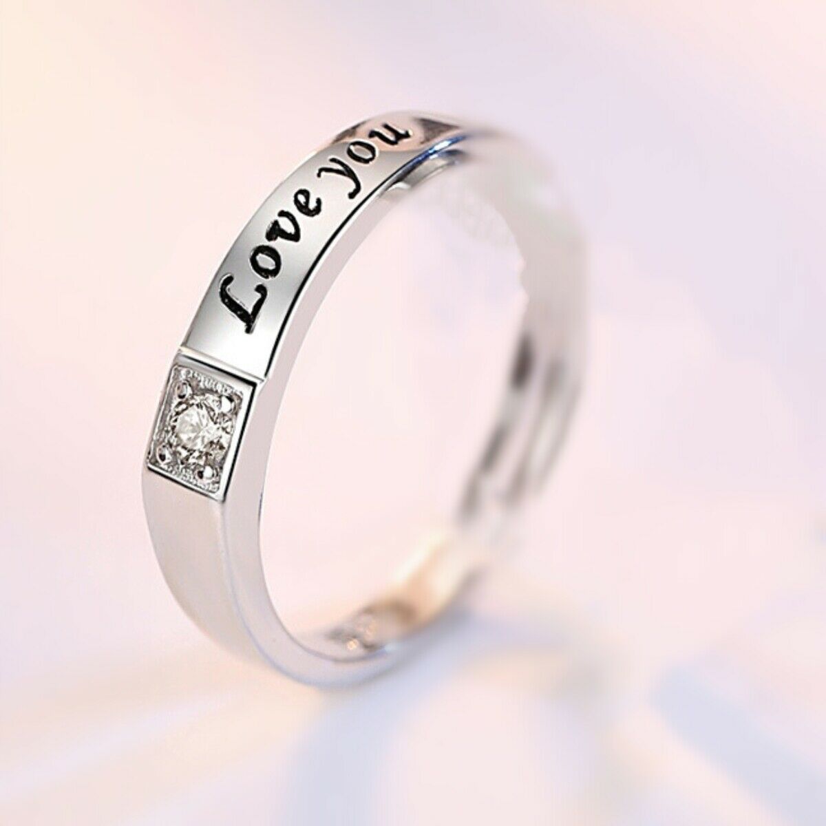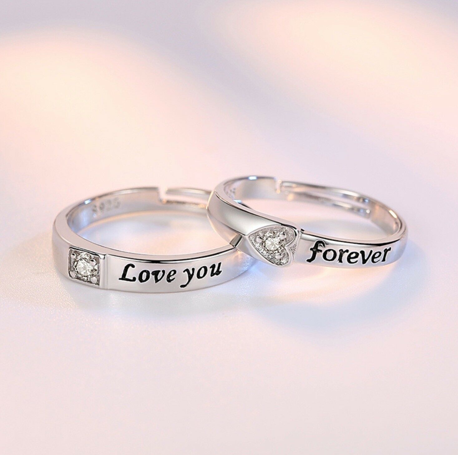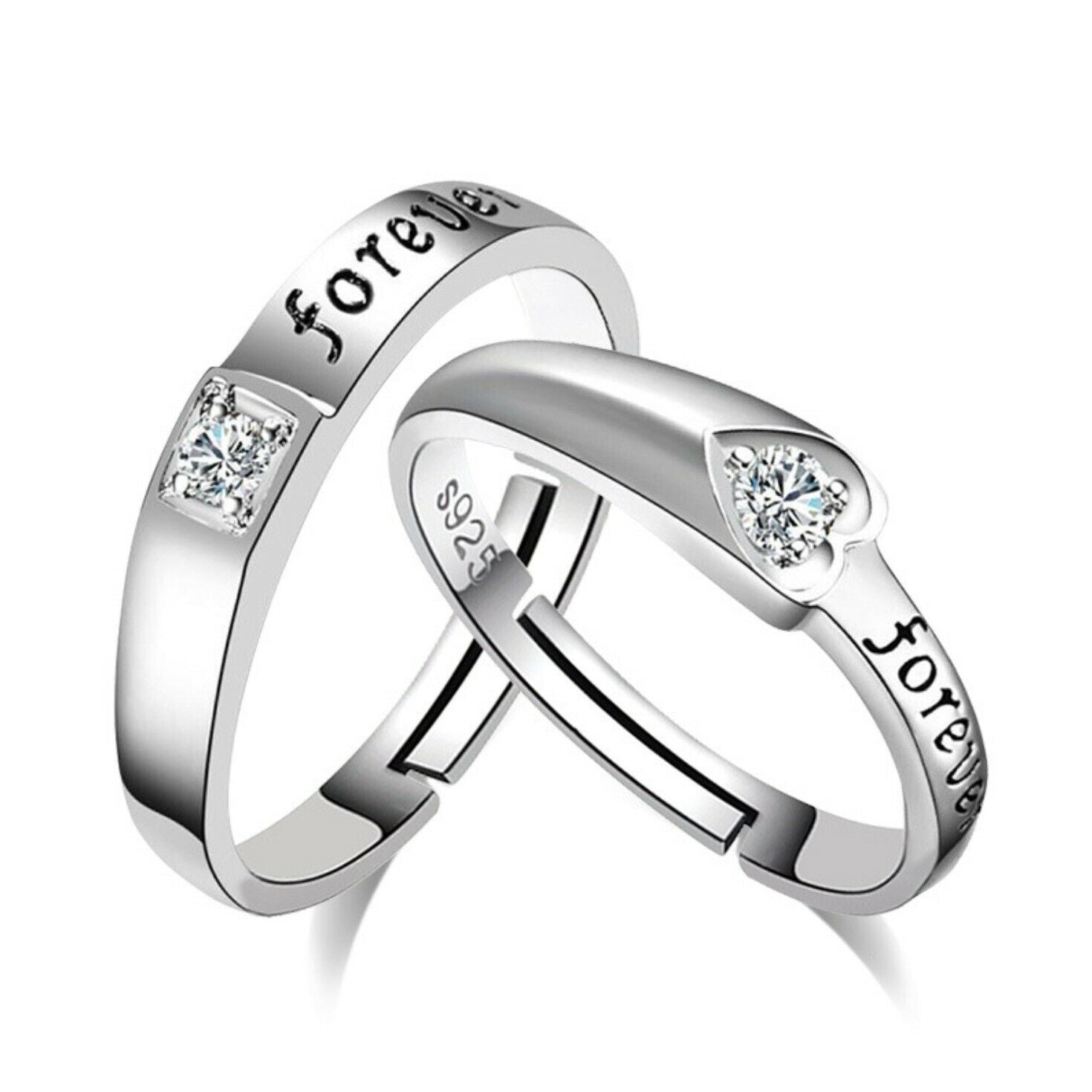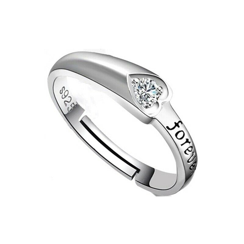 Women's Silver Plated Forever Love Adjustable Couple Zirconia Ring
