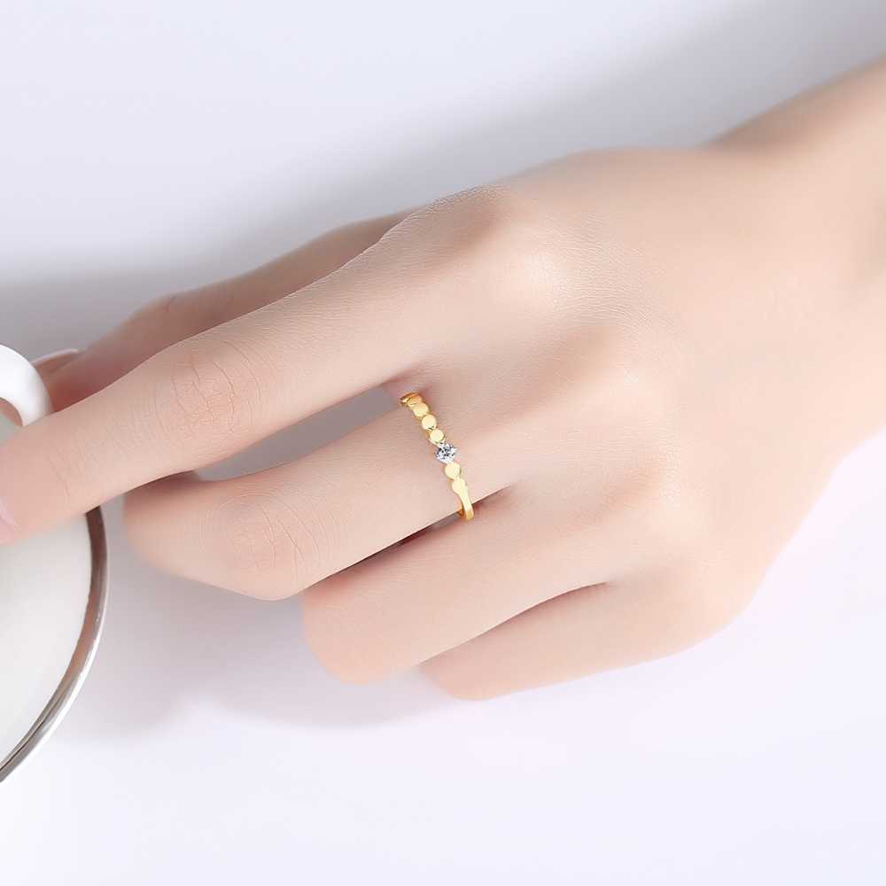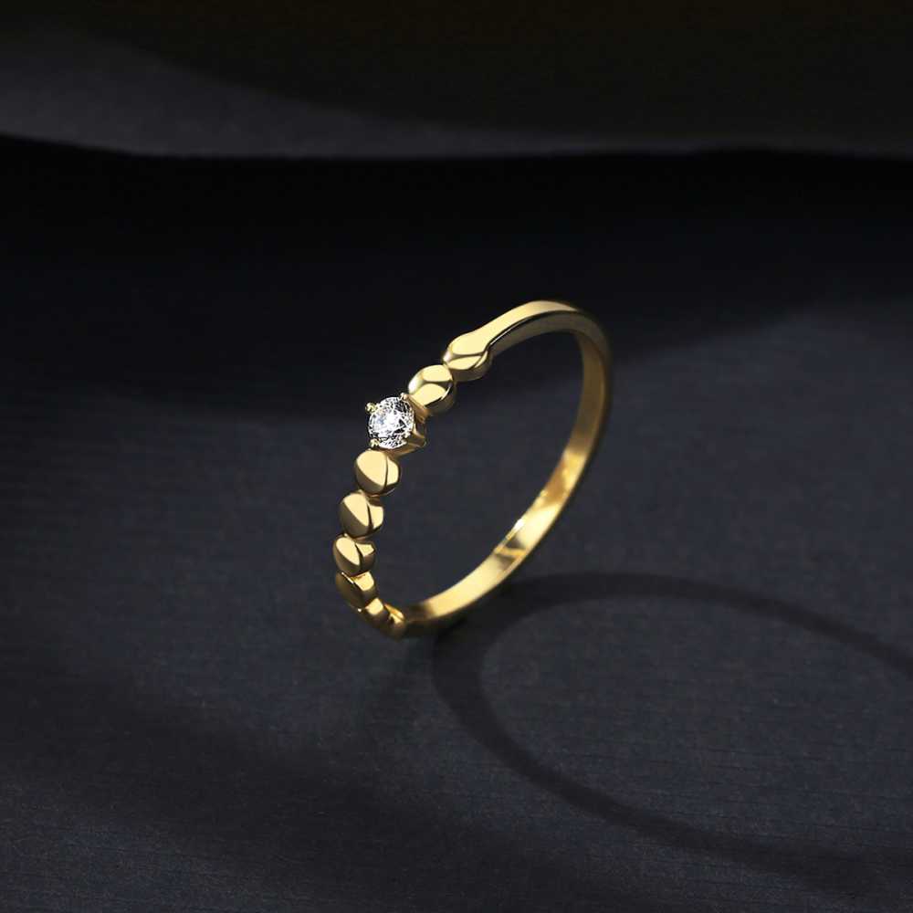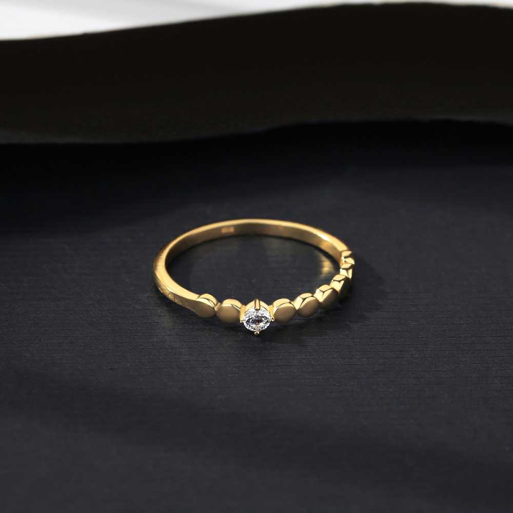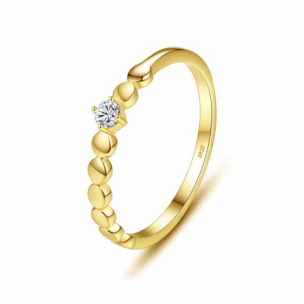 Dainty, delicate, this ring features petite spheres on a delicate band anchored by a solitaire cubic zirconia. This gorgeous piece can be stacked up or worn alone to add an extra touch of glam to your new manicure.