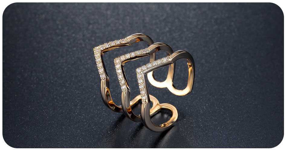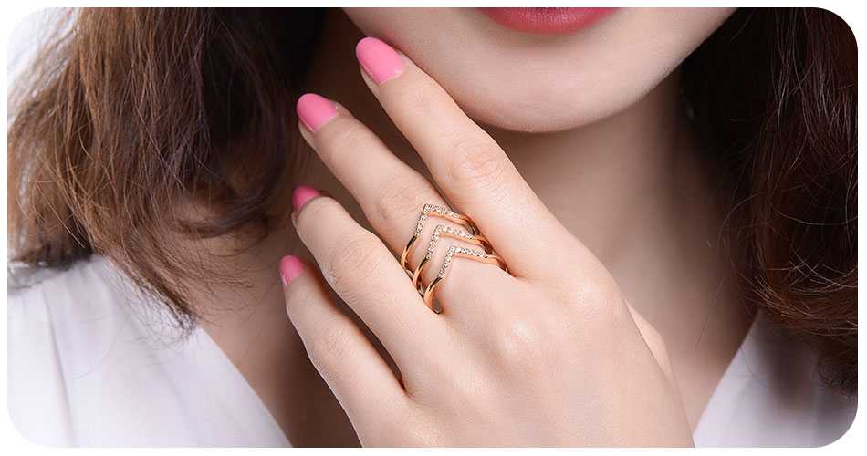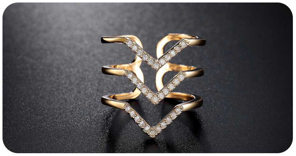 For a head-turning ring stack, this open three-tier wishbone ring spice up your style quotient. This standout ring studded with cubic zirconia on your ring finger sets you on a unique edge for a bold, beautiful look.