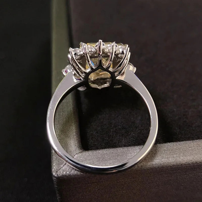 This stunning wedding ring features a sparkling yellow zircon stone set in 925 sterling silver. Perfect for bridal or engagement wear.