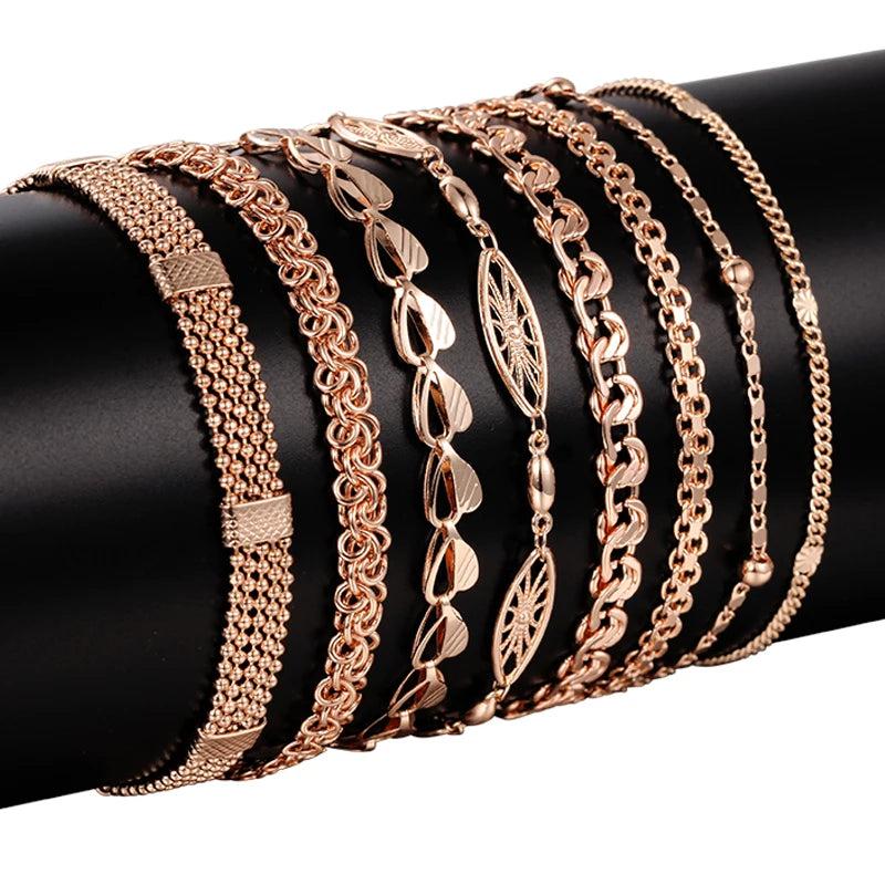585 Rose Curb/Weaving Bracelets Chains Jewelry 18cm-23cm