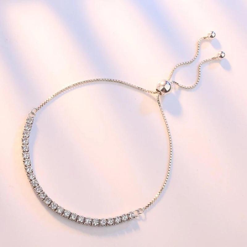 925 Silver CZ Tennis Bracelet Women Girls Box Chain Jewelry