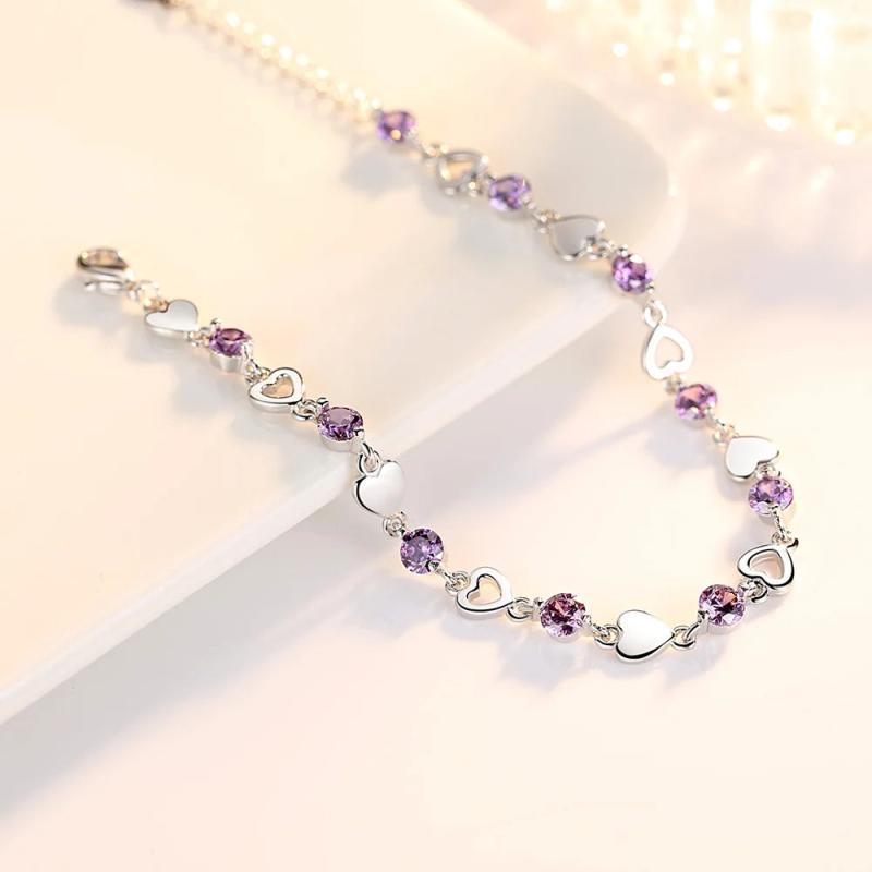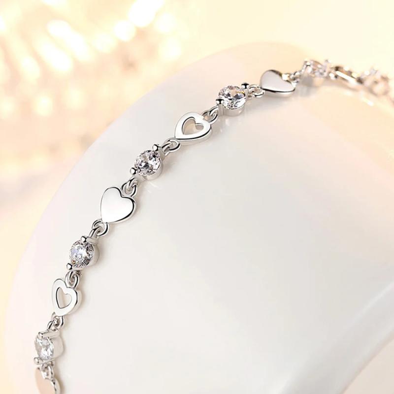 925 Silver Moissanite Tennis Bracelet Lab Diamond Love Heart for Party Gift