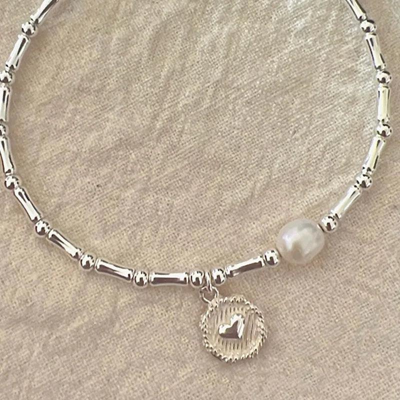 Beautiful and elegant 925 sterling silver bracelet featuring pearls and bamboo knots. Perfect gift for women and girls on birthdays or special occasions.