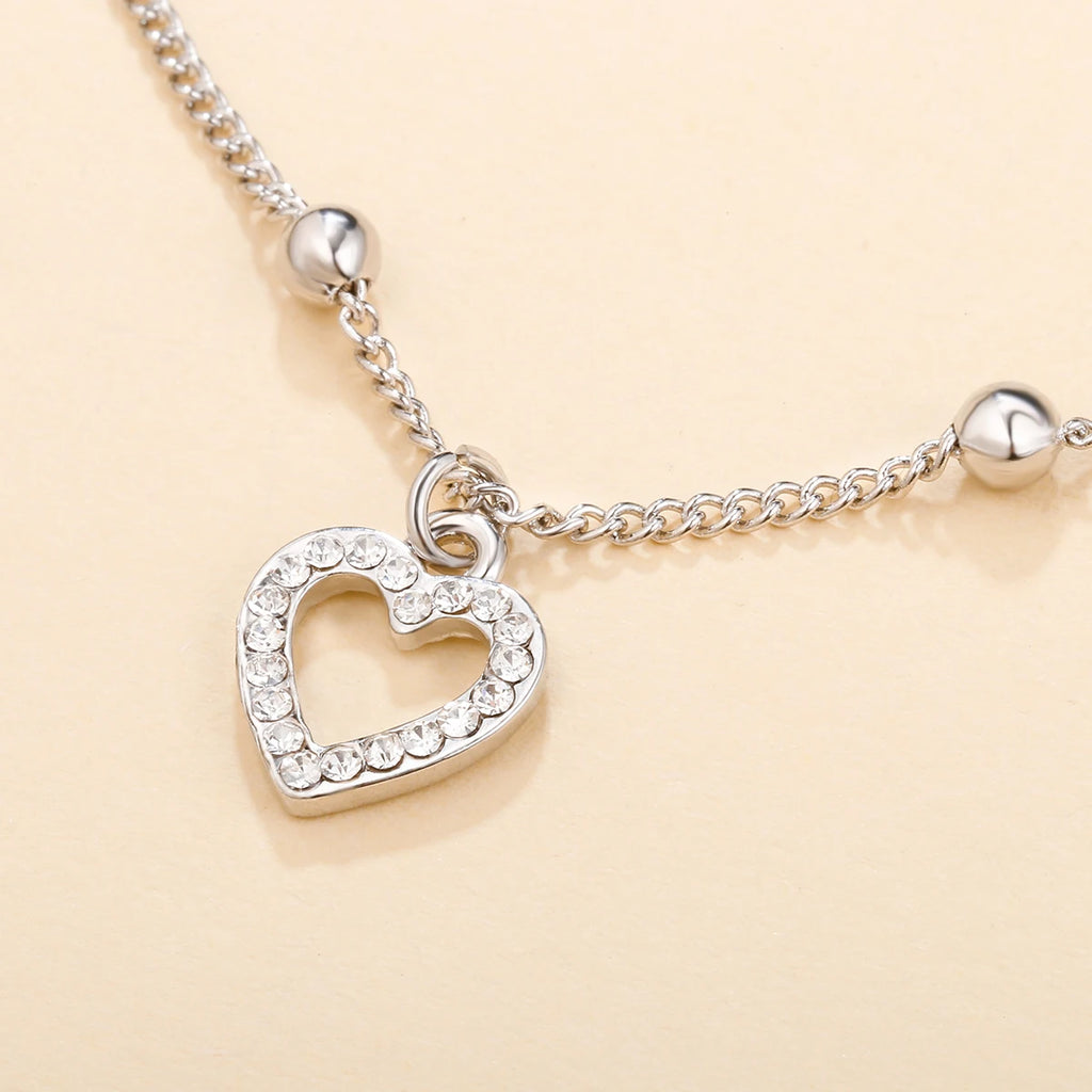 Elegant stainless steel anklet bracelet featuring a hollow heart design. Perfect for weddings, parties, or everyday wear.