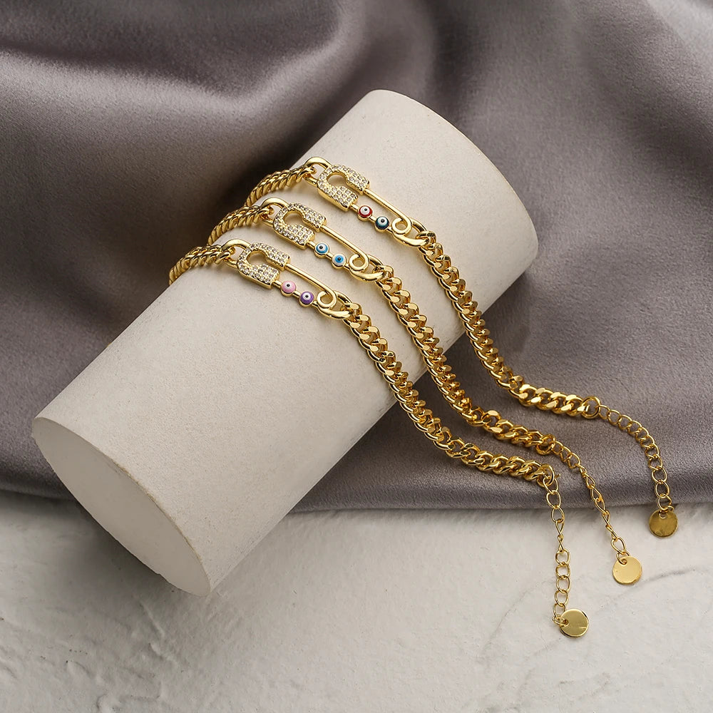 Colourful Enamel Evil Eye Link Chain Bracelet