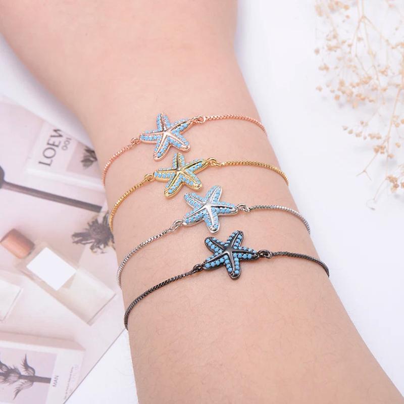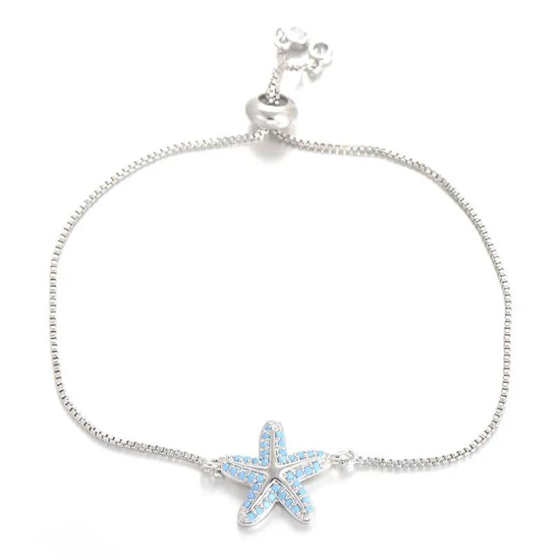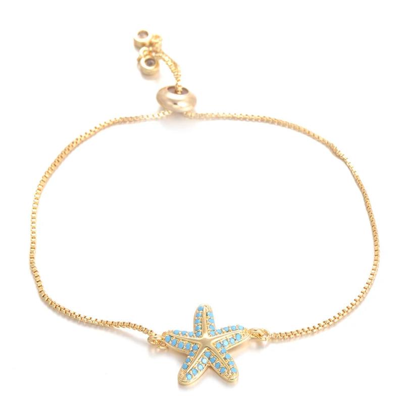 Add a touch of summer style with this starfish charm bracelet featuring CZ zircons. Perfect gift for women.